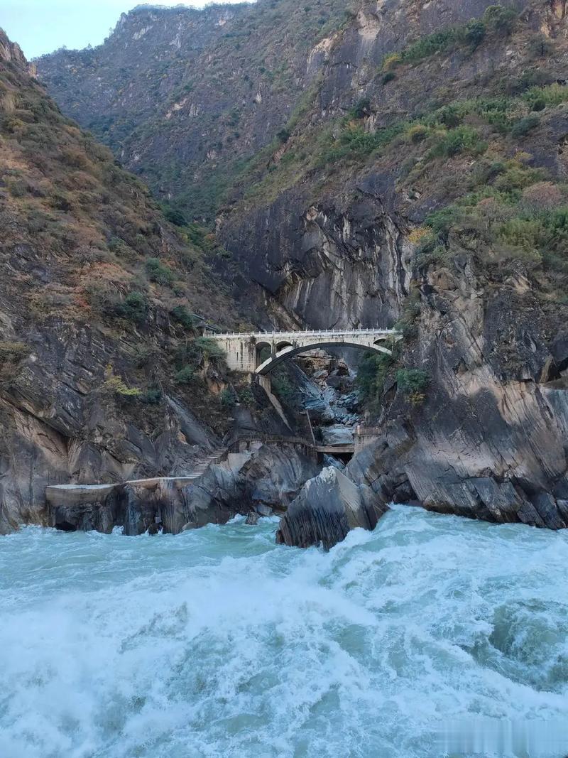 虎跳峡是另一个必去的地方,金沙江在玉龙和哈巴两座雪山之间奔涌而过,江水撞击礁石发出雷鸣般的轰鸣,站在观景台上都能感受到脚下在微微震动。如果你体力够好,虎跳峡高路徒步线是世界级的徒步路线,全程走下来绝对是你旅行生涯里的一段高光回忆。