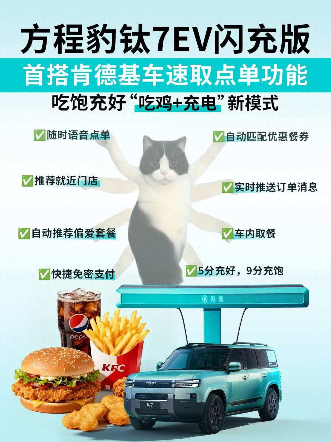 方程豹钛7EV闪充版,首搭肯德基车速取智能点单