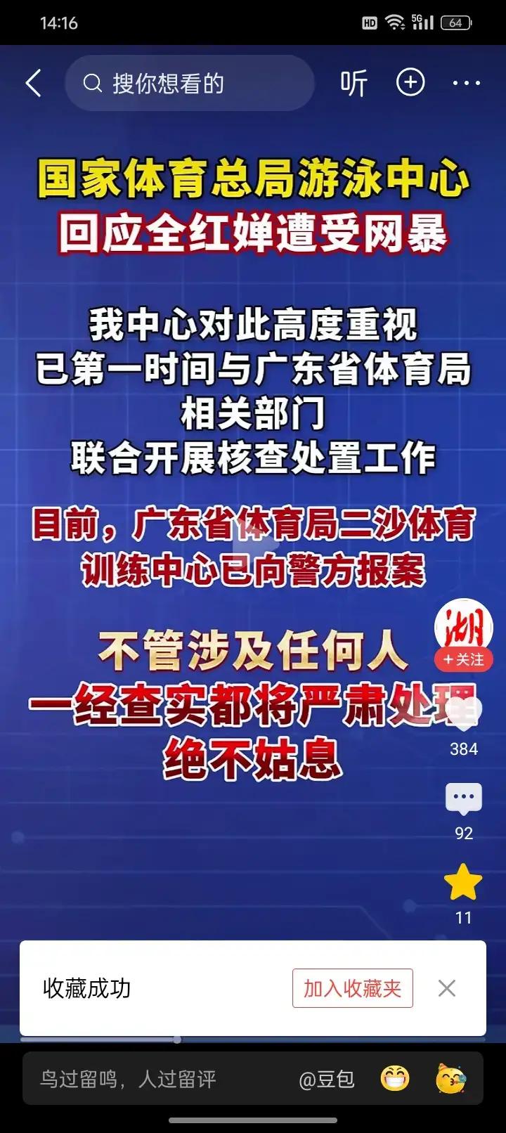 全红婵遭网暴,国家体育总局出手了。她所在的广东训练中心直接报警,游泳中心也正式发声。这一下,那些在网上乱喷的人该慌了。