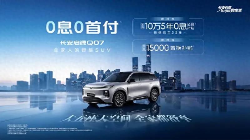 2025年4月上市,到年底收官,长安启源Q07用6.7万辆的累计交付,在中型插混SUV市场站稳了脚跟。进入2026年3月,它没有躺在成绩单上休息,而是推出“惠民焕新购车季”:至高10万元5年0息、至高1.5万元置换补贴。这套组合拳打下来,持币观望的人很难不动心。