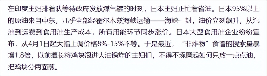 毕竟在这一波中东战火引发的油荒里,日本是重灾区,他们95%以上的原油都来自中东,霍尔木兹海峡一被封锁,再加上日本是美国盟友,肯定是伊朗的重点打击对象,直接导致日本的原油进口量骤减。