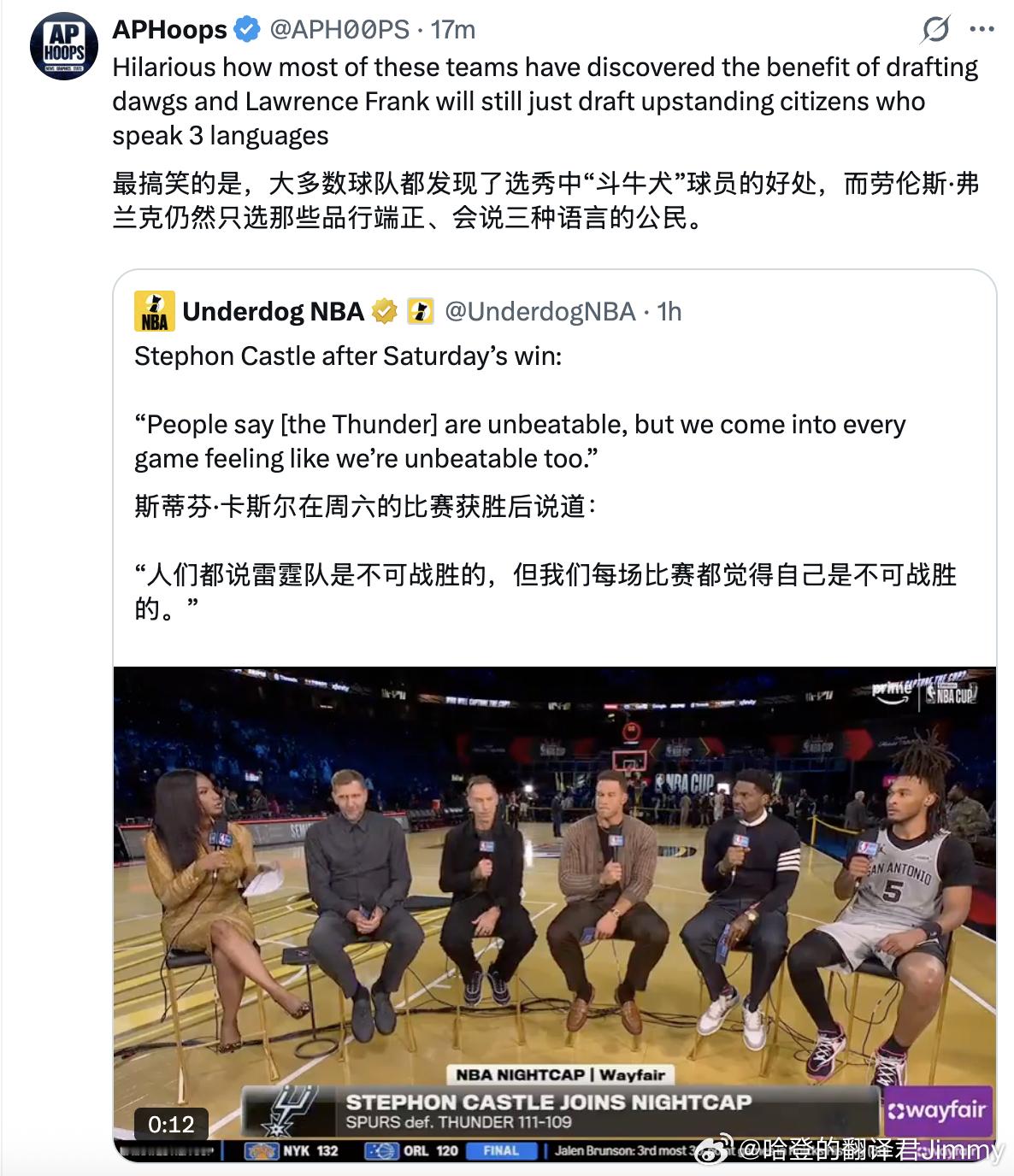 文班谈今晚击败雷霆队:“有些人天生适合这个时代,有些人则不适合……我们天生适合这