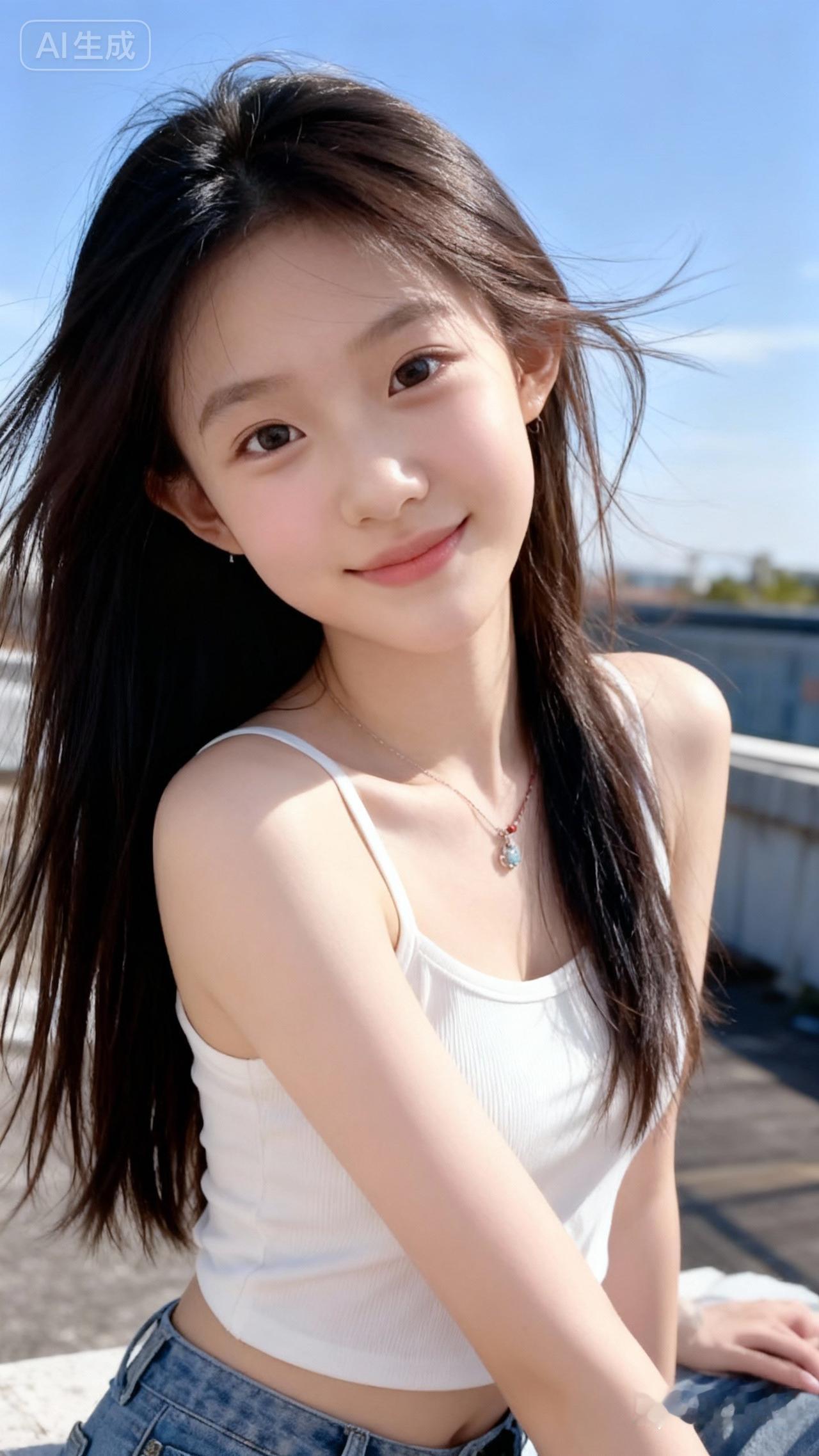 一个长发及腰仙气飘飘的东方美女,日常快照风格,非精心构图或打光,邻家少女,冷白皮