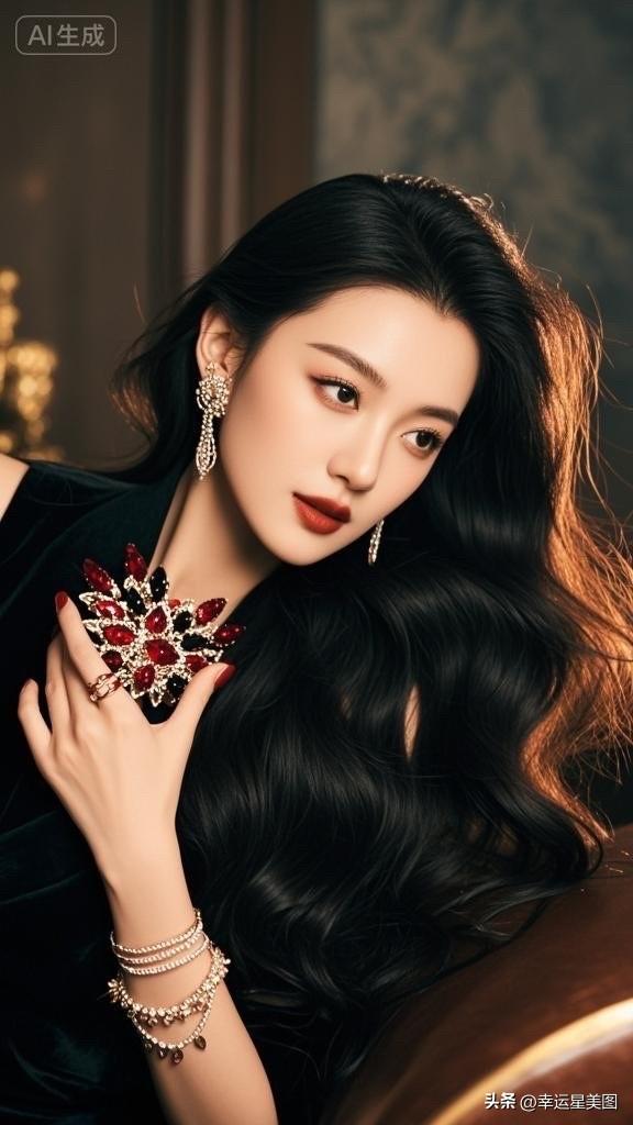 黑发红唇,优雅动人,AI生成的完美女神!