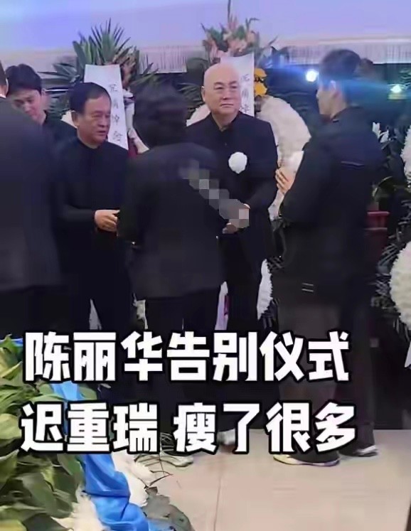 74岁的他,比往日消瘦了一大圈,黑色素服衬得脸色愈发苍白,胸前的白花像一朵凝结的哀伤,眼底的红血丝藏不住,肩膀微微佝偻着。