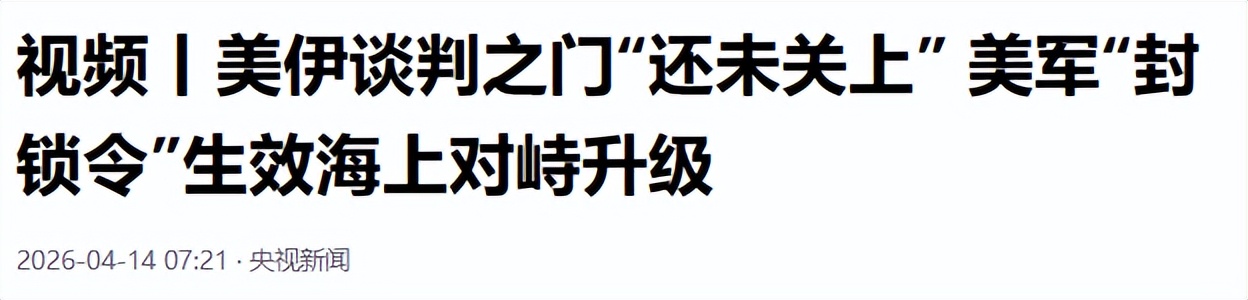 1.2026-04-14《视频丨美伊谈判之门“还未关上” 美军“封锁令”生效海上对峙升级》-央视新闻