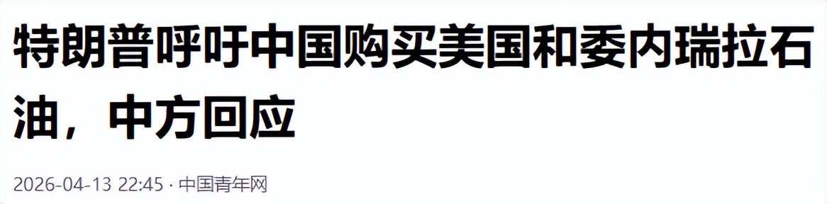3.2026-04-13《特朗普呼吁中国购买美国和委内瑞拉石油,中方回应》-中国青年网