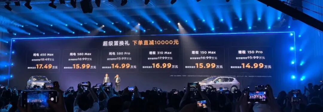 增程车型搭载1.5T四缸发动机,最大功率109kW,电机最大功率为250kW;电池方面提供37.4kWh和43.2kWh两种电池组,最大纯电续航里程为310km(CLTC),综合续航达1450km,配合AI能量管理大模型,亏电油耗为4.51L/100km。