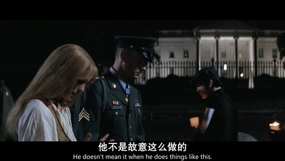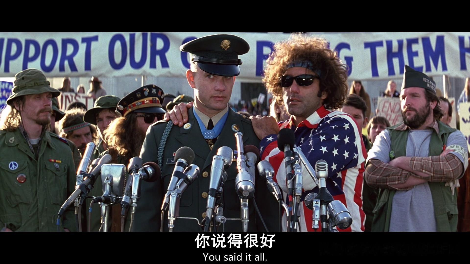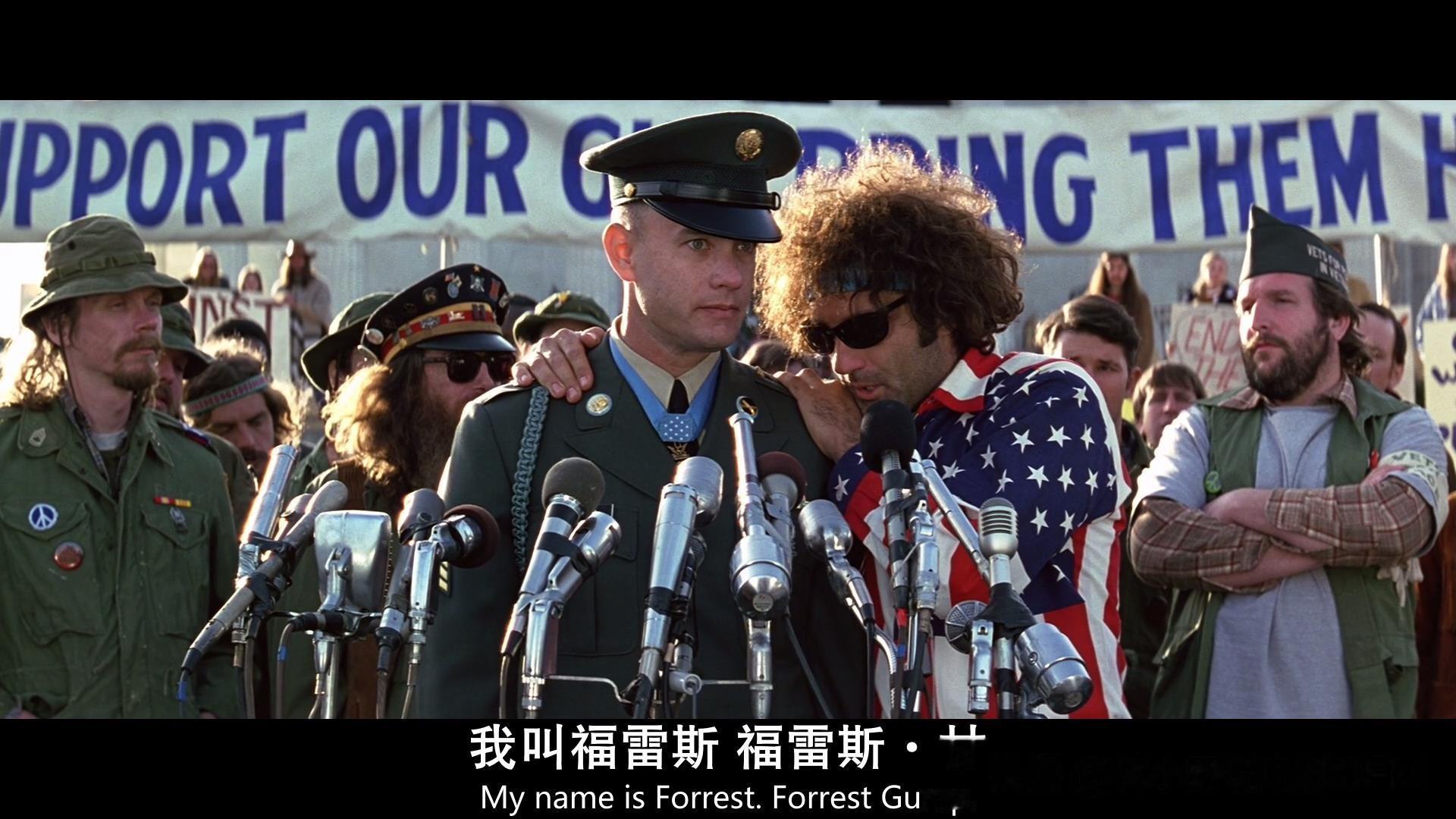 阿甘身边这位明显是活动组织者、身穿星条旗衬衫的男人却一字不差、尽收耳底,听罢他动情地走上前来,泪眼婆娑地拥抱了阿甘。