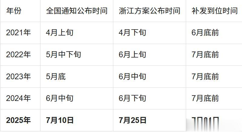 一、公布时间预测很多退休人员关心方案什么时候能看到。综合浙江省近5年发布规律来看:自2022年起,养老金调整通知已连续4年推迟至5-7月发布,2025年7月发布的先例也为2026年提供了重要参考。