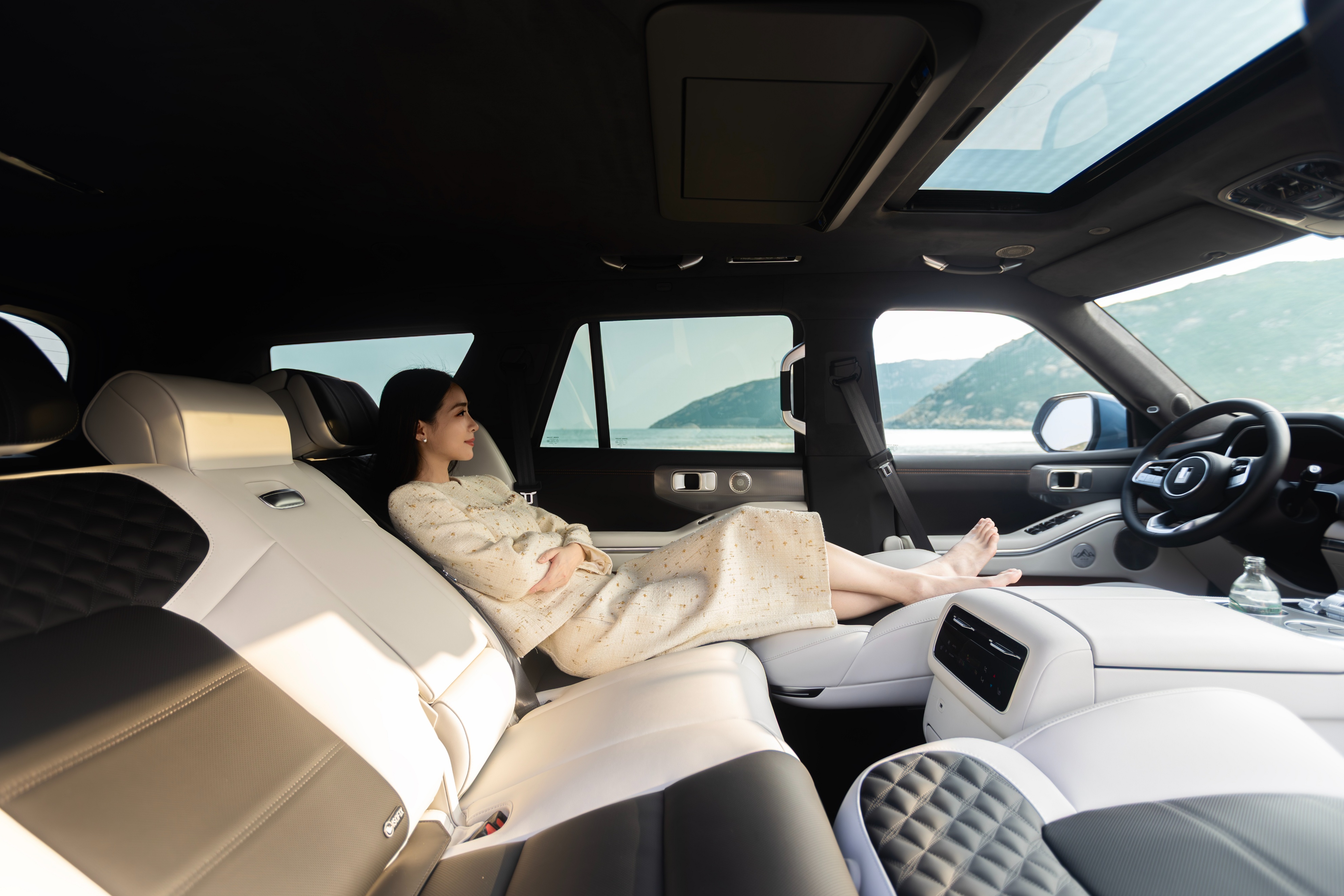 不止于辅助驾驶能力达到了行业第一梯队,全新坦克700更将智慧进阶的体验,无缝延伸至座舱内的每一处细节之中。全新一代Coffee OS 3智能座舱,以全新一代硬件配置的算力跃升带来丝滑流畅的交互体验,全车7屏智能组合覆盖全座舱交互需求,17.3英寸3K后排吸顶屏及中控大屏均获得莱茵三重护眼认证,行业首发的系统级色觉辅助系统,兼顾老人、孩子与色觉障碍人群的用车需求,真正实现科技平权。同时,标配5.4L智能冷暖冰箱、21个扬声器打造的7.1.4杜比全景声系统、全速域静音舱,配合全员满配通风/加热/按摩的纤云座椅,让每一位乘员都能享受到不分主次的老板座待遇,真正实现“一车搞定全场景”的全域豪华体验。