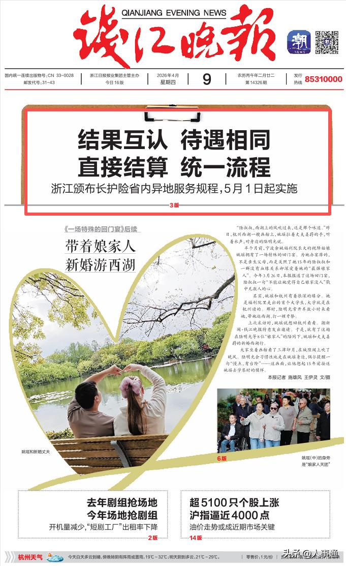 办理超简单:打开"浙里办—浙里医保—浙里长护在线",填信息备案就生效 ;评估结果全省互认,变更居住地也能线上改备案。