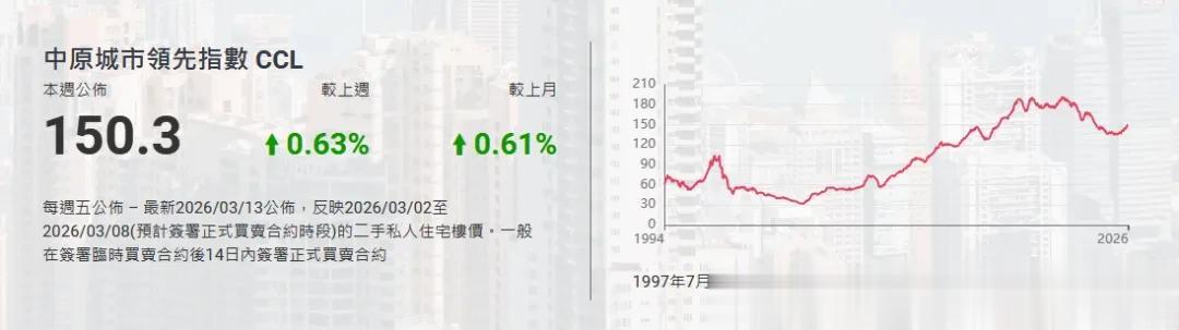 二手房市场也跟着沾光。那个追踪香港房价的“中原城市领先指数(CCL)”,最新数据已经窜到了150.3。你别看这数字不起眼,这意味着,香港房价自去年3月见底以来,已经悄悄地累计上涨了11.4%!