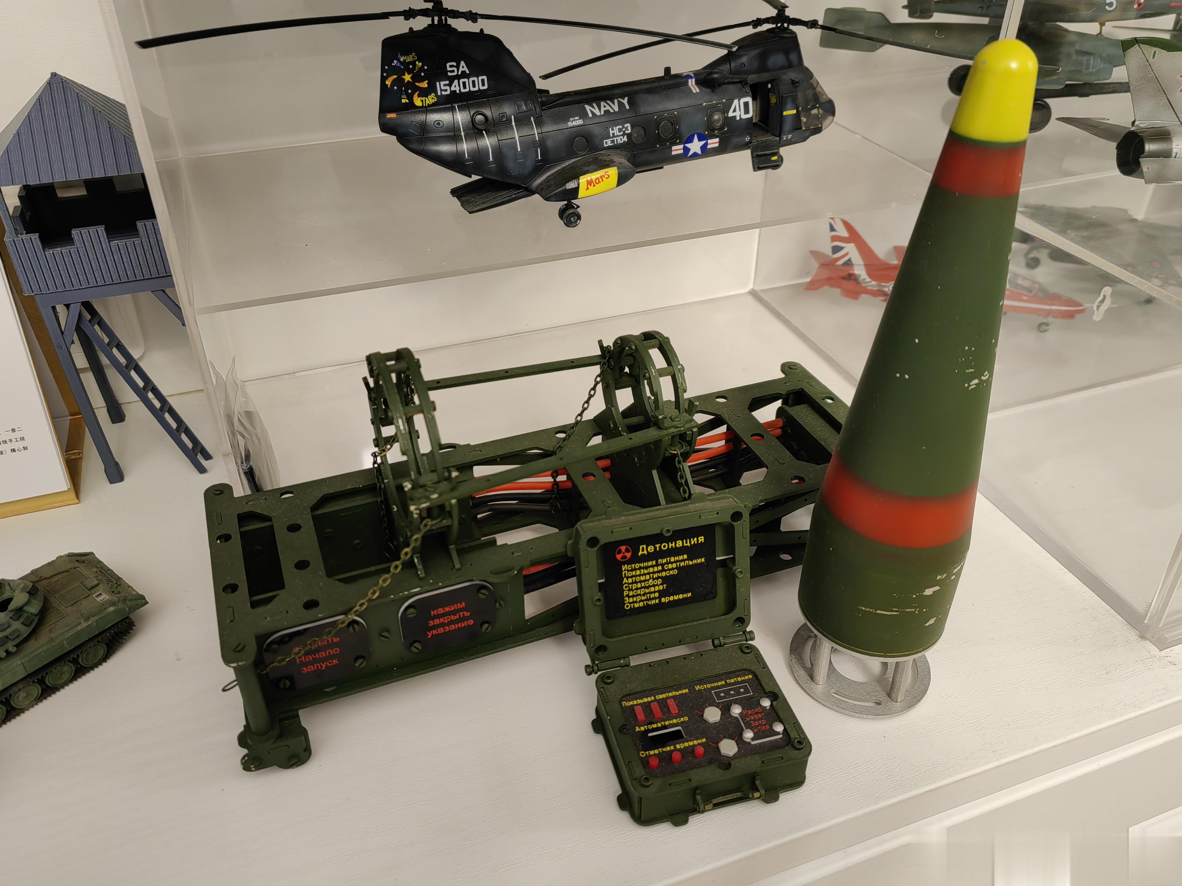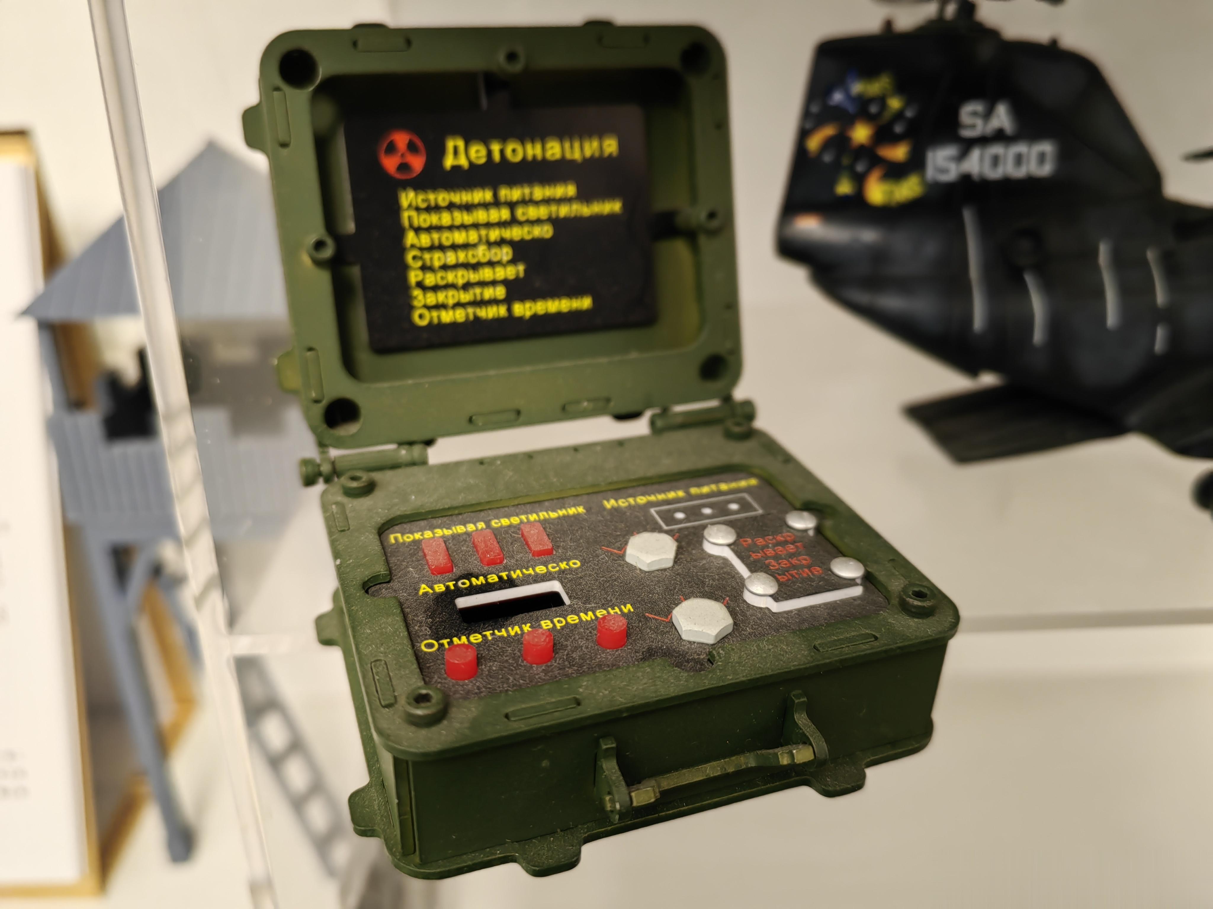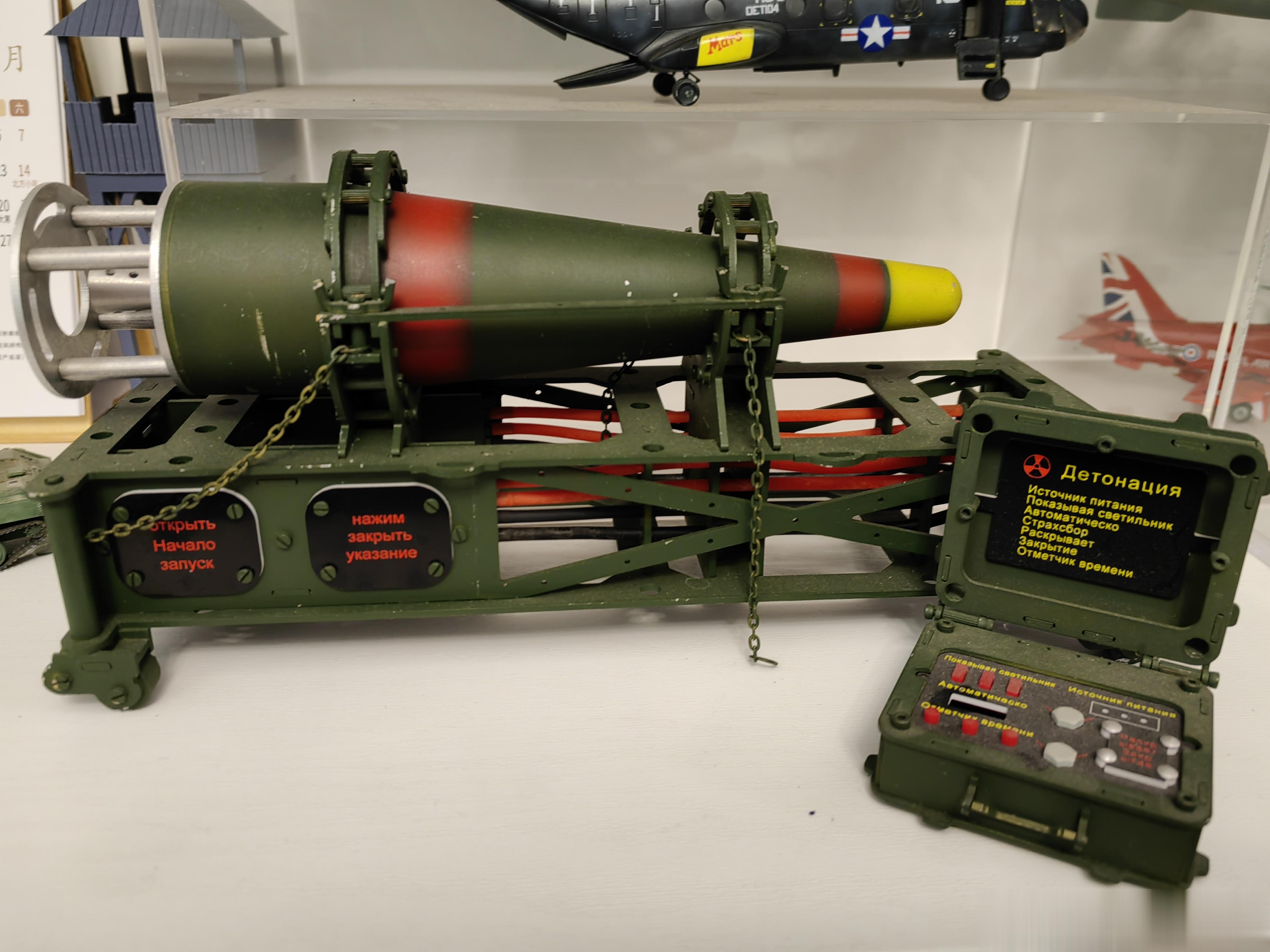 没有想到还发售过电影周边,这是恐怖分子获得的一枚苏制SS-21“圣甲虫”(即“圆点”)战役战术弹道导弹用核弹头模型。模型除了核弹头本体外,还带有存放支架,以及一套核弹机械起爆装置。虽然是模型,但核弹和支架是全钢制作,超级重,起爆器是塑料制品,也是细节满满。核弹支架上的镰刀锤子五星图案,还是共产主义感拉满!