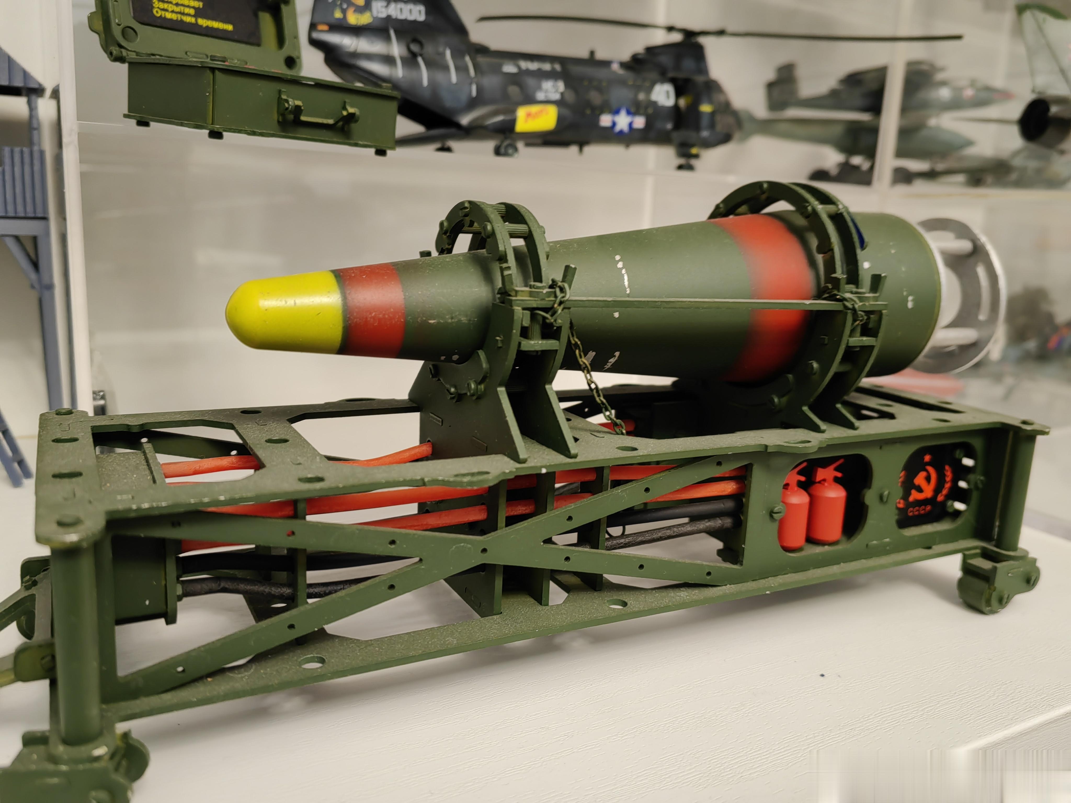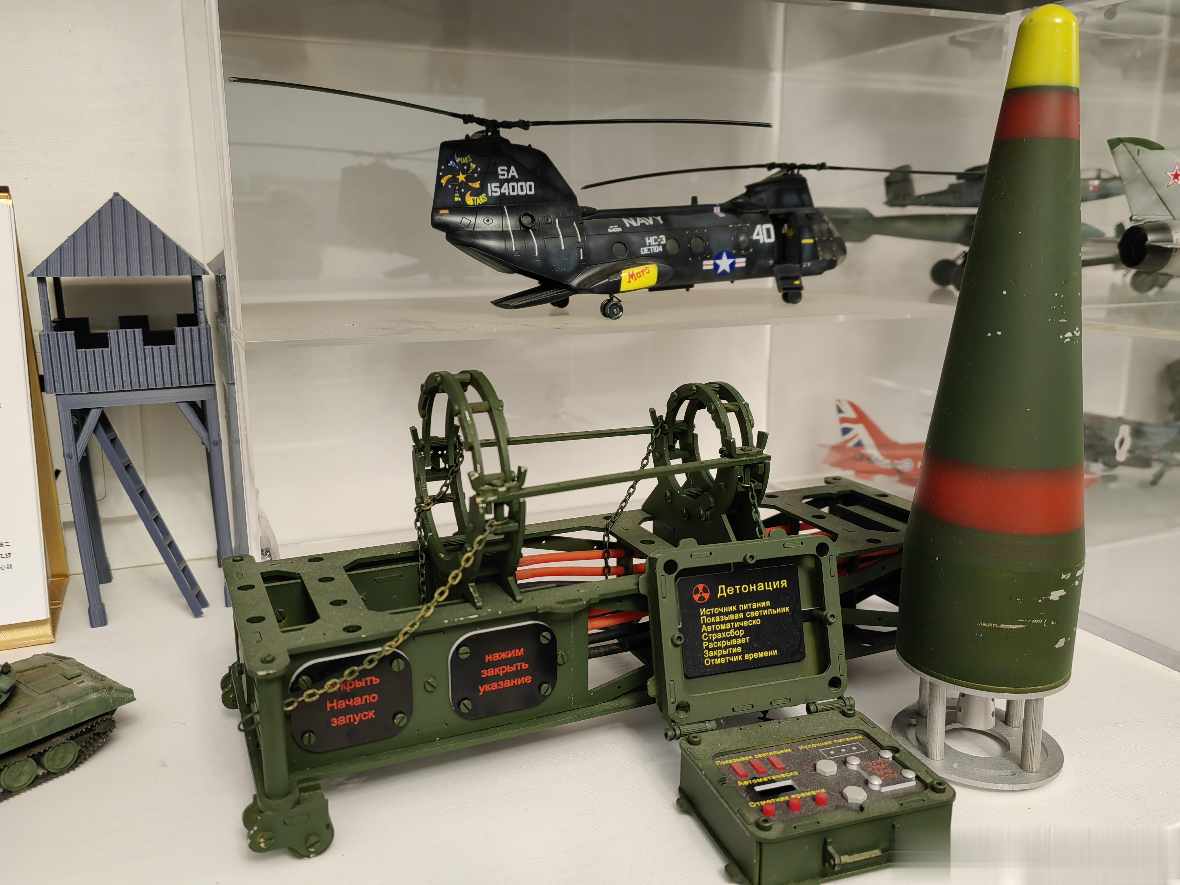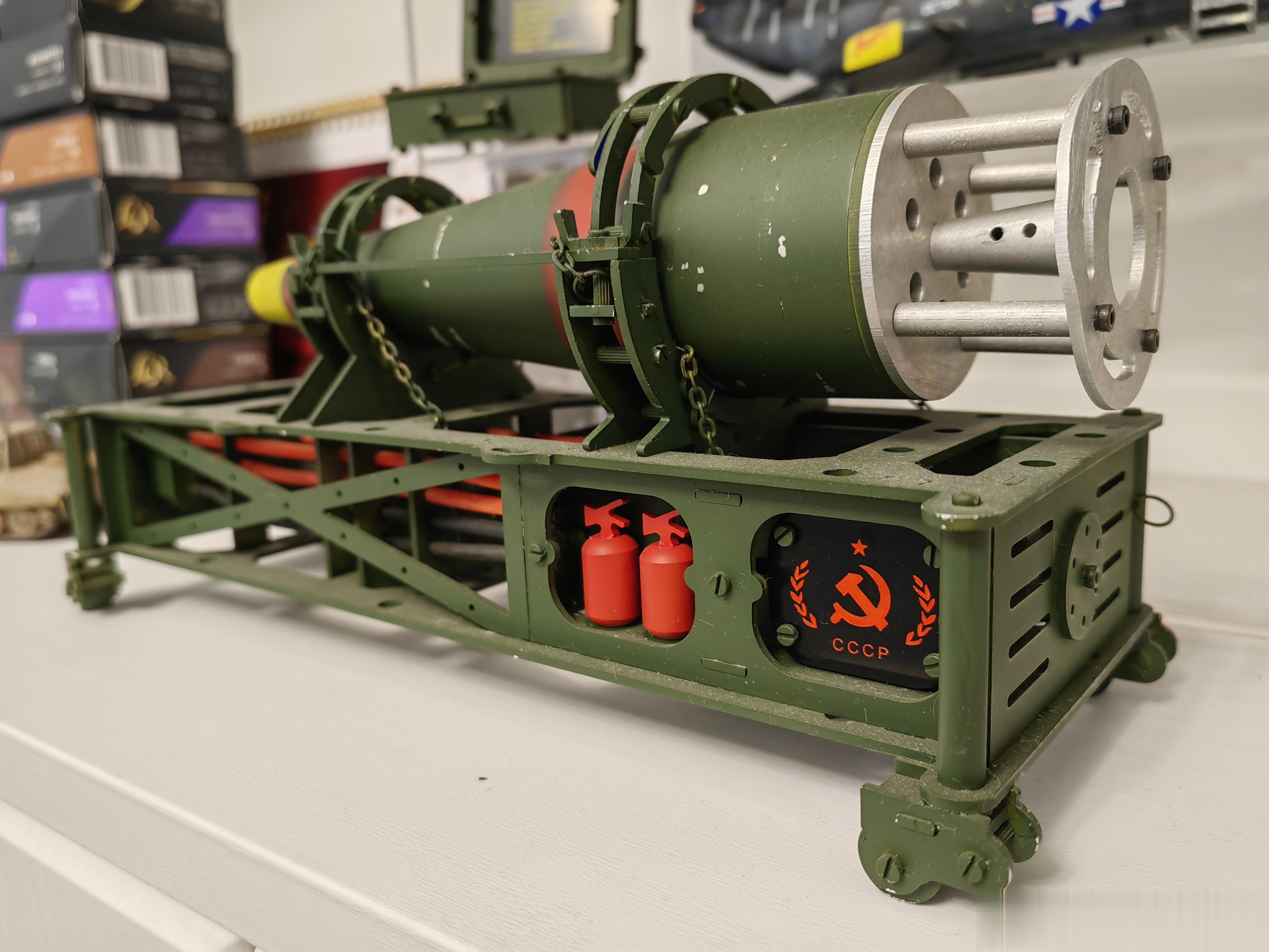 没有想到还发售过电影周边,这是恐怖分子获得的一枚苏制SS-21“圣甲虫”(即“圆点”)战役战术弹道导弹用核弹头模型。模型除了核弹头本体外,还带有存放支架,以及一套核弹机械起爆装置。虽然是模型,但核弹和支架是全钢制作,超级重,起爆器是塑料制品,也是细节满满。核弹支架上的镰刀锤子五星图案,还是共产主义感拉满!