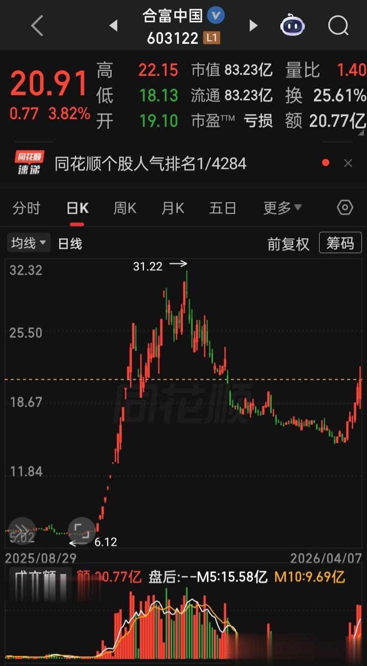 合富中国,涨3.82%(成交20.77亿,换手25.61%,振幅19.96%)