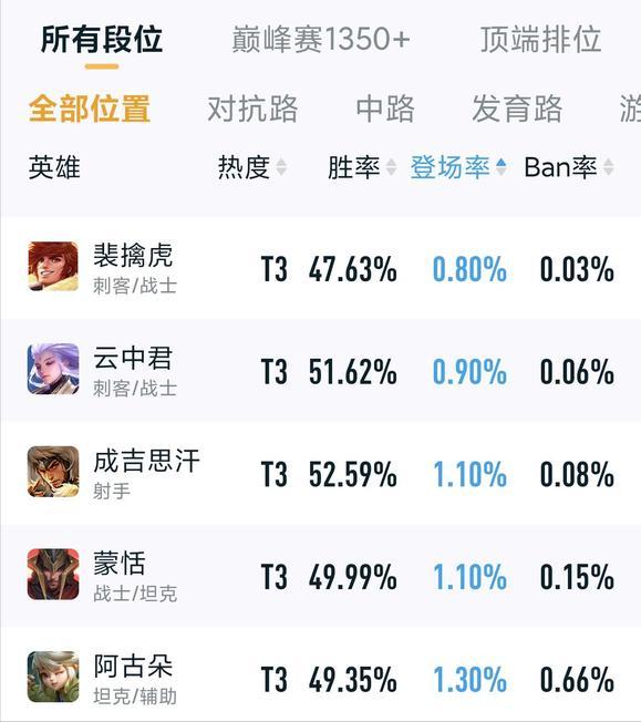 裴擒虎胜率出场率全分段倒数第一,现在就连1350+出场率都倒一,策划真的不管一下? 以前老虎的强度就是依靠刷野效率高,双形态前期强势的打法称霸的,但是现在野区保护机制越来越强之后,老虎的优势荡然无存。 镜澜曜哪个刷的不比老虎快,同样的经济差老虎能抓人这几个都能一个人冲进对面乱杀了,老虎现在玩着多难受啊,两条边路道又变宽了很难抓人,一个前期反野抓人的节奏英雄只能在自家野区闷头刷。 同段位老虎表现就不如别的打野,这英雄绝活哥都难救,现在玩老虎的主播就可杰 夹子 李知恩了吧。除了可杰有时候硬拿,别的都看对面阵容了。 会玩的要不是为了流量早就去玩别的了。十分钟不烧脑能赢干嘛玩这种十五分钟烧脑的英雄。