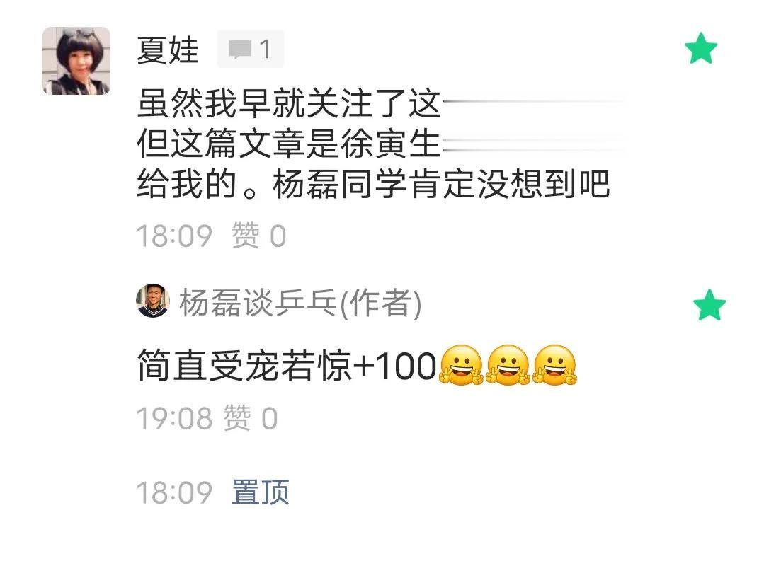 这篇文,得到了中国乒坛大佬中的大佬徐寅生老先生的关注,受宠若惊,超级开心,特别分