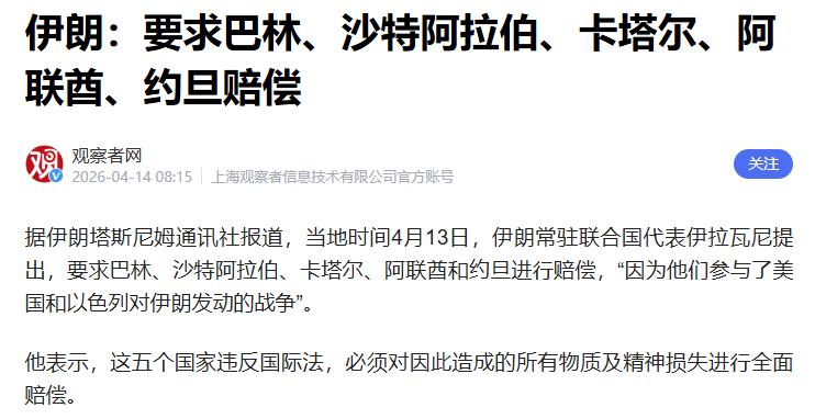 那些被伊朗索赔的国家,也未必能独善其身,一旦冲突持续升级,他们的安全和经济也会受到波及,最终还是要为自己的选择付出代价。