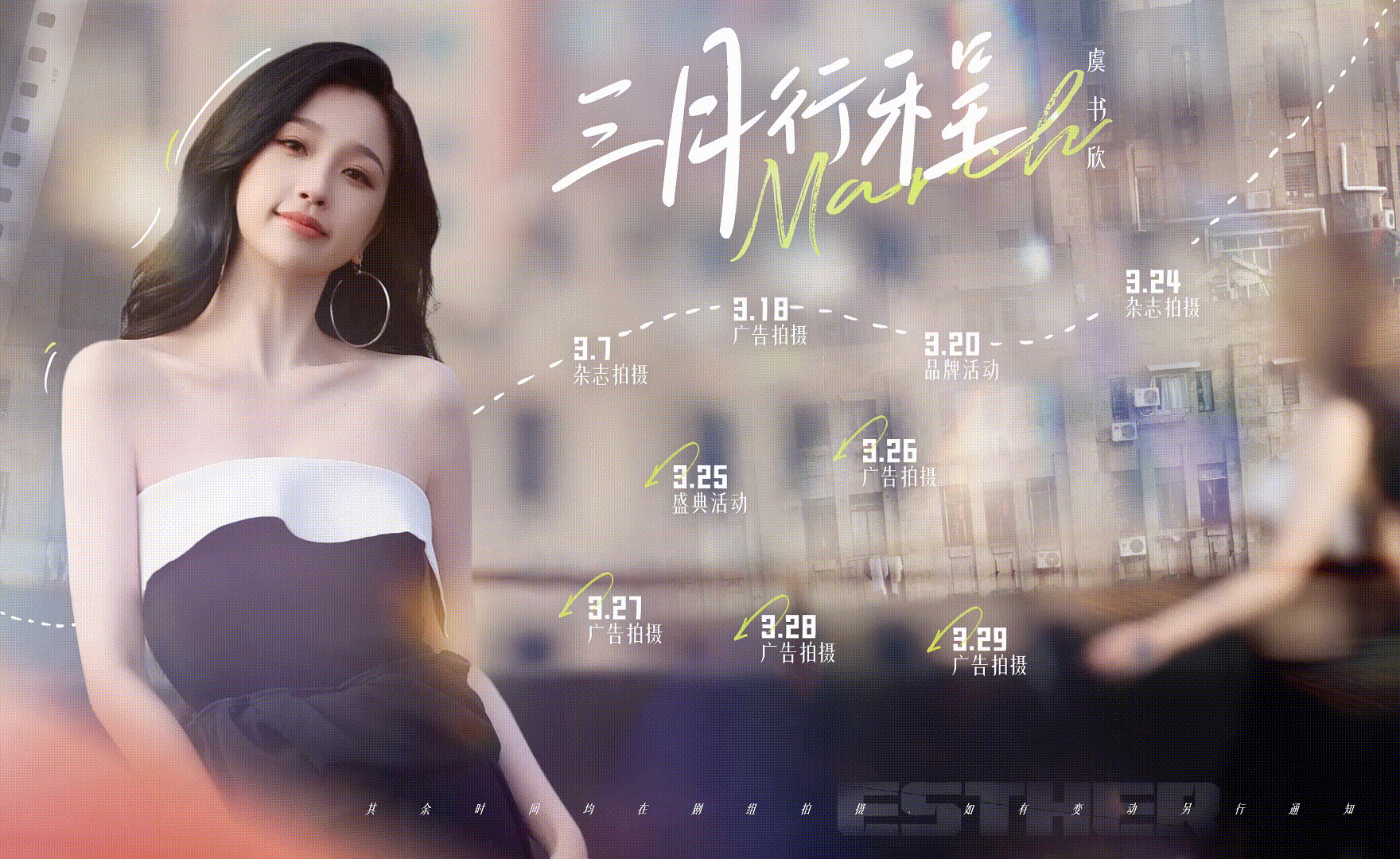 女明星三月行程图赵丽颖、赵露思、白鹿、虞书欣、angelababy、李一桐、金晨、唐嫣、赖美云、宋轶、陈都灵、孔雪儿、李兰迪、毛晓彤、娜扎、乔欣、谭松韵、徐璐、宣璐、张婧仪、张予曦、周洁琼、张俪