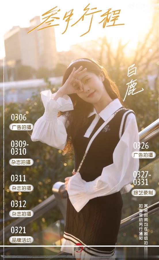 女明星三月行程图赵丽颖、赵露思、白鹿、虞书欣、angelababy、李一桐、金晨