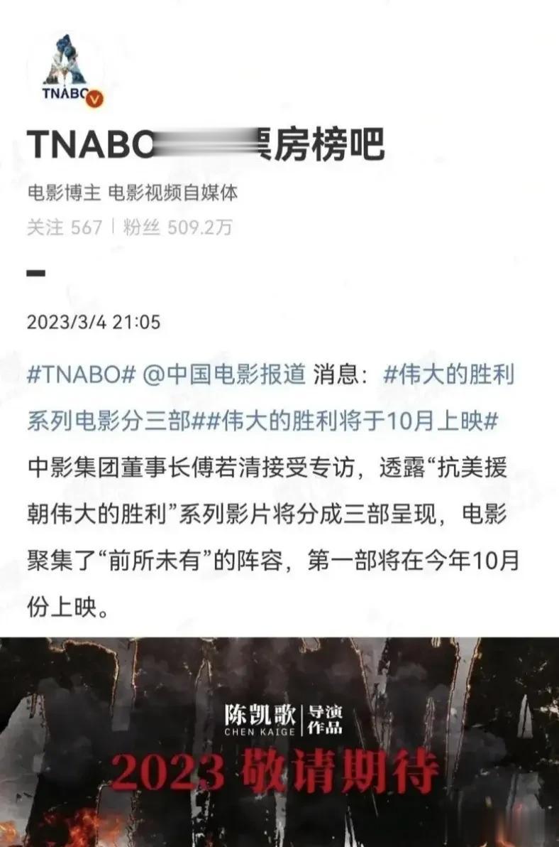 有消息说,陈凯歌导演的新片《伟大的胜利》,将分成三部上映,对此,很多网友觉得陈凯歌这是为了追求票房最大化才这么做,这样拍一部片可以赚三部片的钱,其实我却不这么认为,我觉得陈凯歌把《伟大的胜利》分成三部,是极致追求艺术的表现,往往一个完整复杂的故事,很难把它压缩在一部电影短短的两个小时以内,陈凯歌把《伟大的胜利》成三部上映,这样电影的情节会更加的饱满,也可以让观众欣赏到更多的细节和情感!