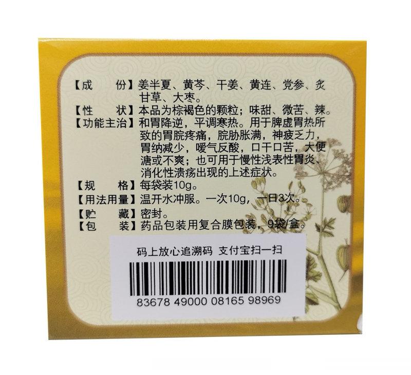 半夏和胃颗粒 适应症状群: 吐酸烧心,嘴发苦发干,大便溏稀。吃口热的辣的就上火,吃口凉的就拉肚子,吃多点就打嗝胀肚睡不好。 只能用这个名了,用原名恐怕销路不好。