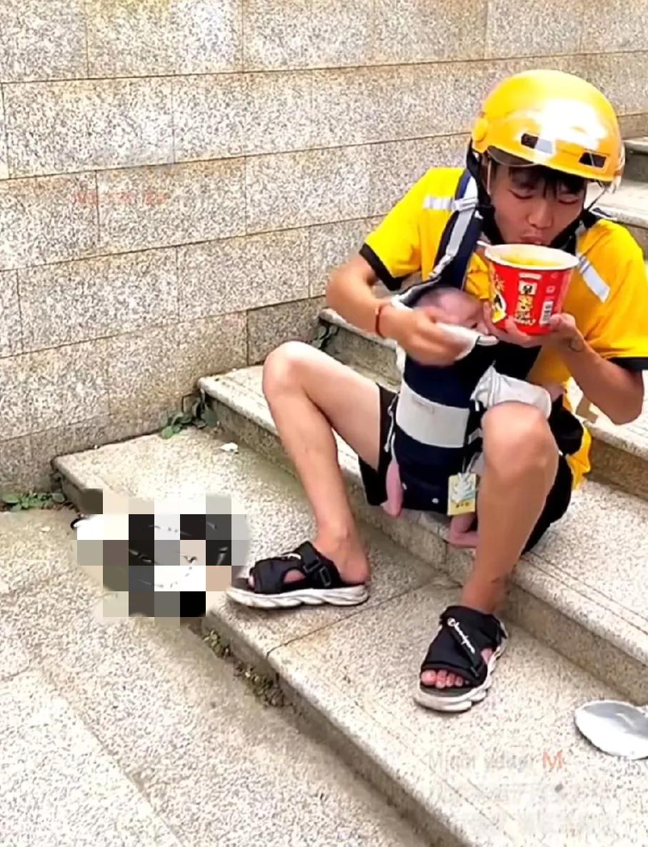 孩子两个月大妈妈就离家出走了, 无奈之下爸爸只能带着两个月的儿子送外卖。看的让人