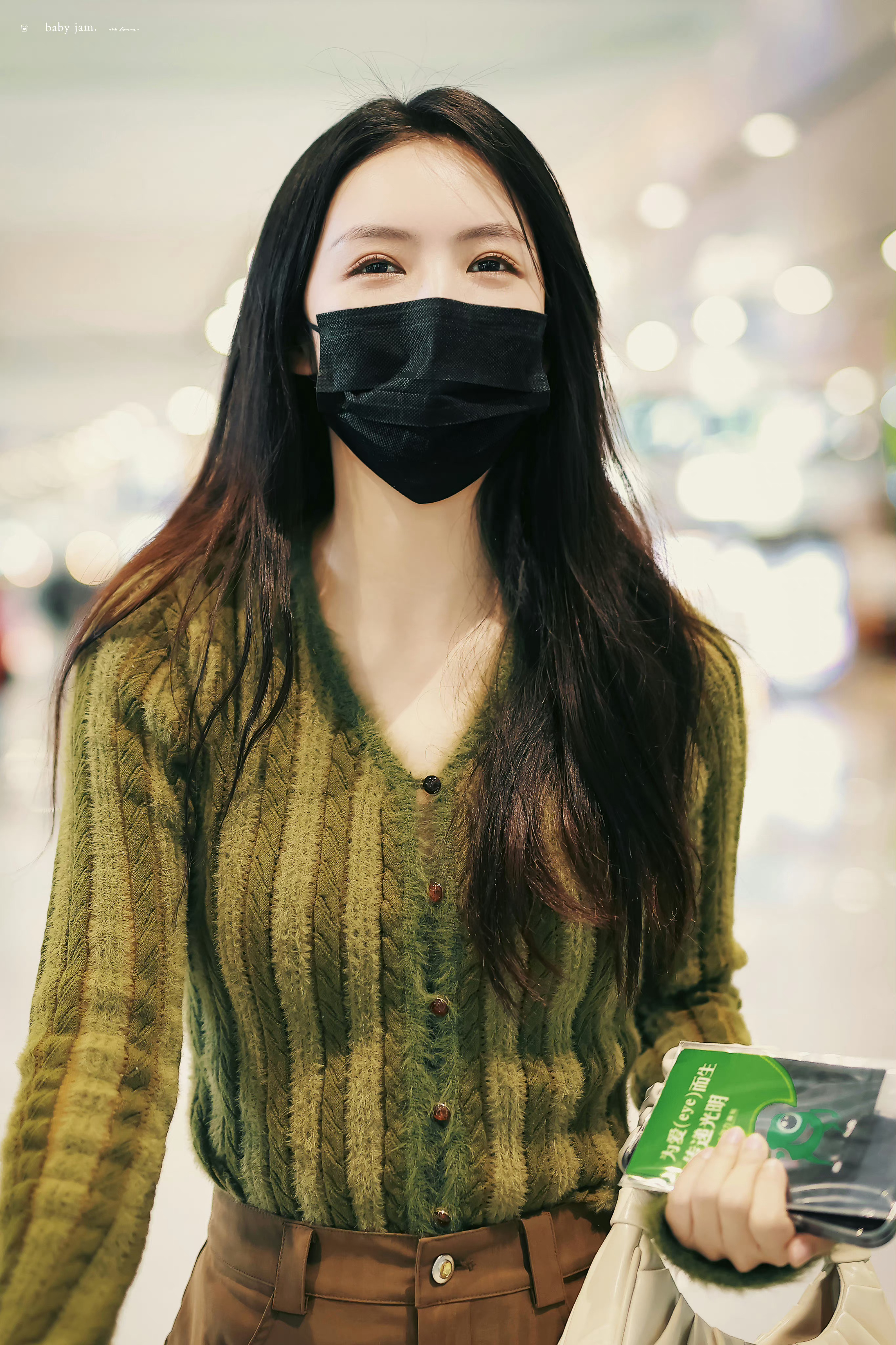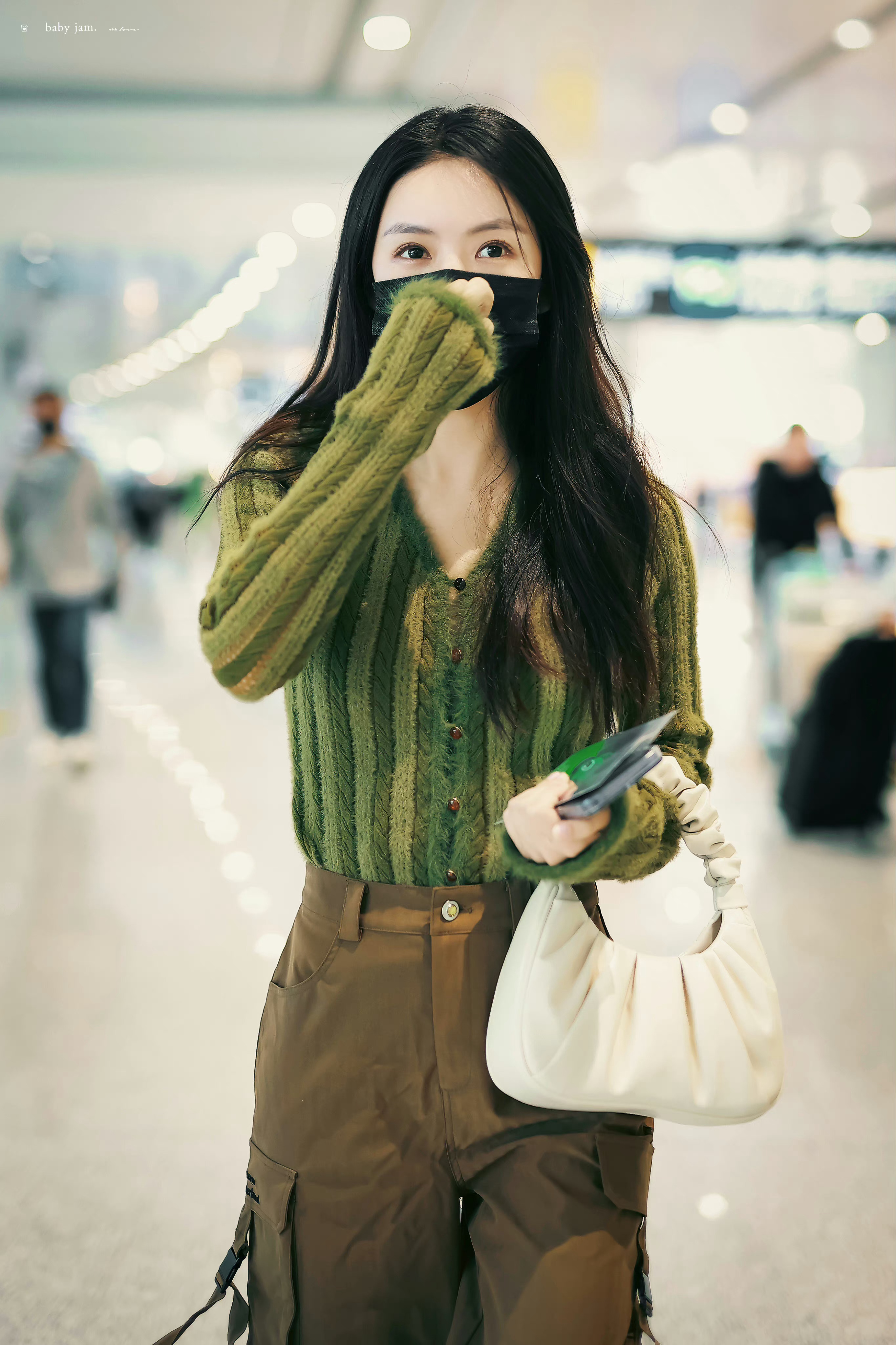 鞠婧祎机场私服,她好喜欢玲娜贝儿!