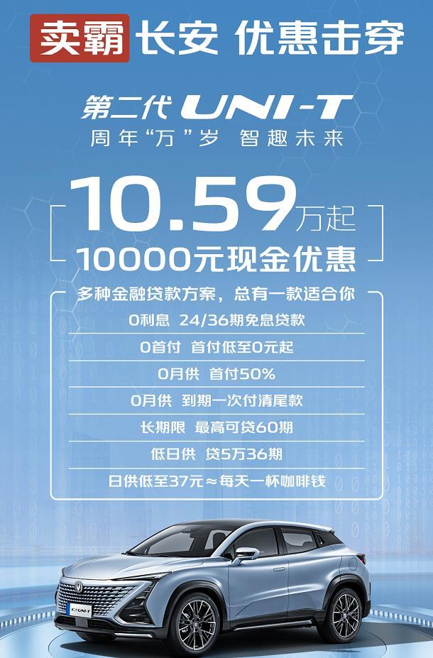 前面一段时间,长安推出了很多车型的优惠,唯独没有二代UNI-T。 这次二代UNI-T也纳入了优惠,直降10000元,10.59万起。搭载高通骁龙8155芯片。 除了价格低外,还推出了免息金融服务,提供24个月,36个月免息贷款。 对于追求前卫的新生代来说,UNI-T无疑是更加具有吸引力。与之相匹配的是,搭载了新一代蓝鲸1.5T发动机,动力也非常强。