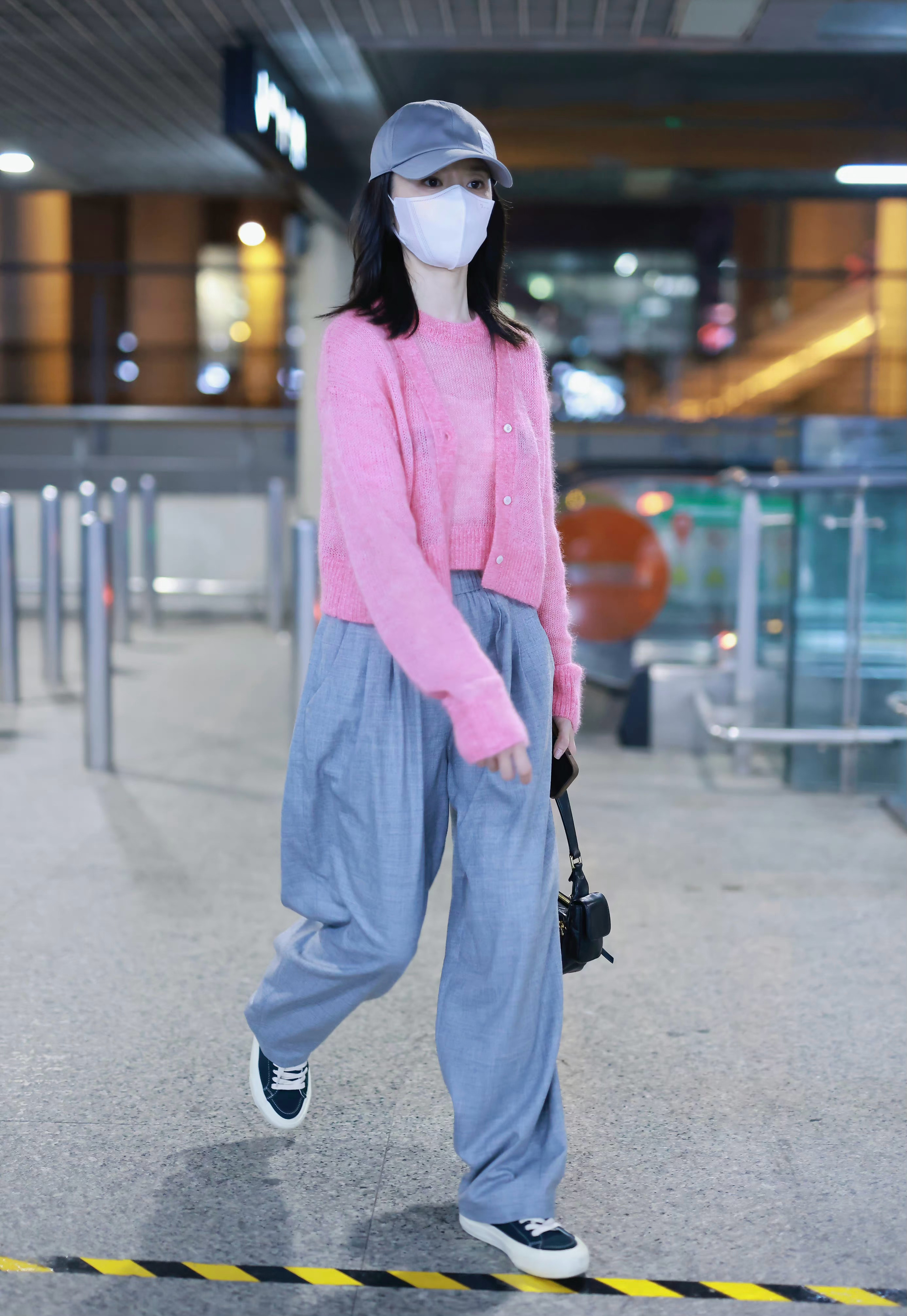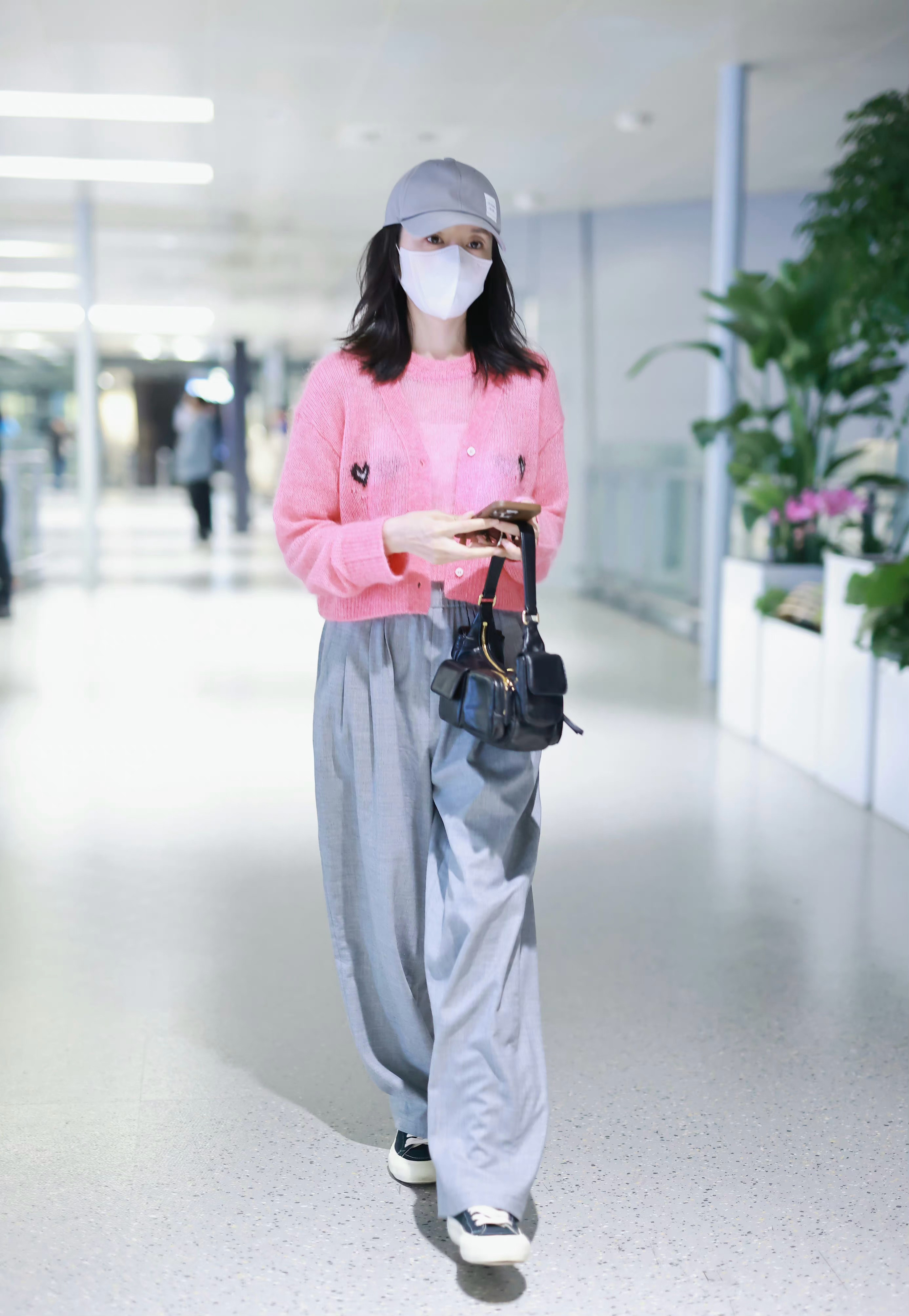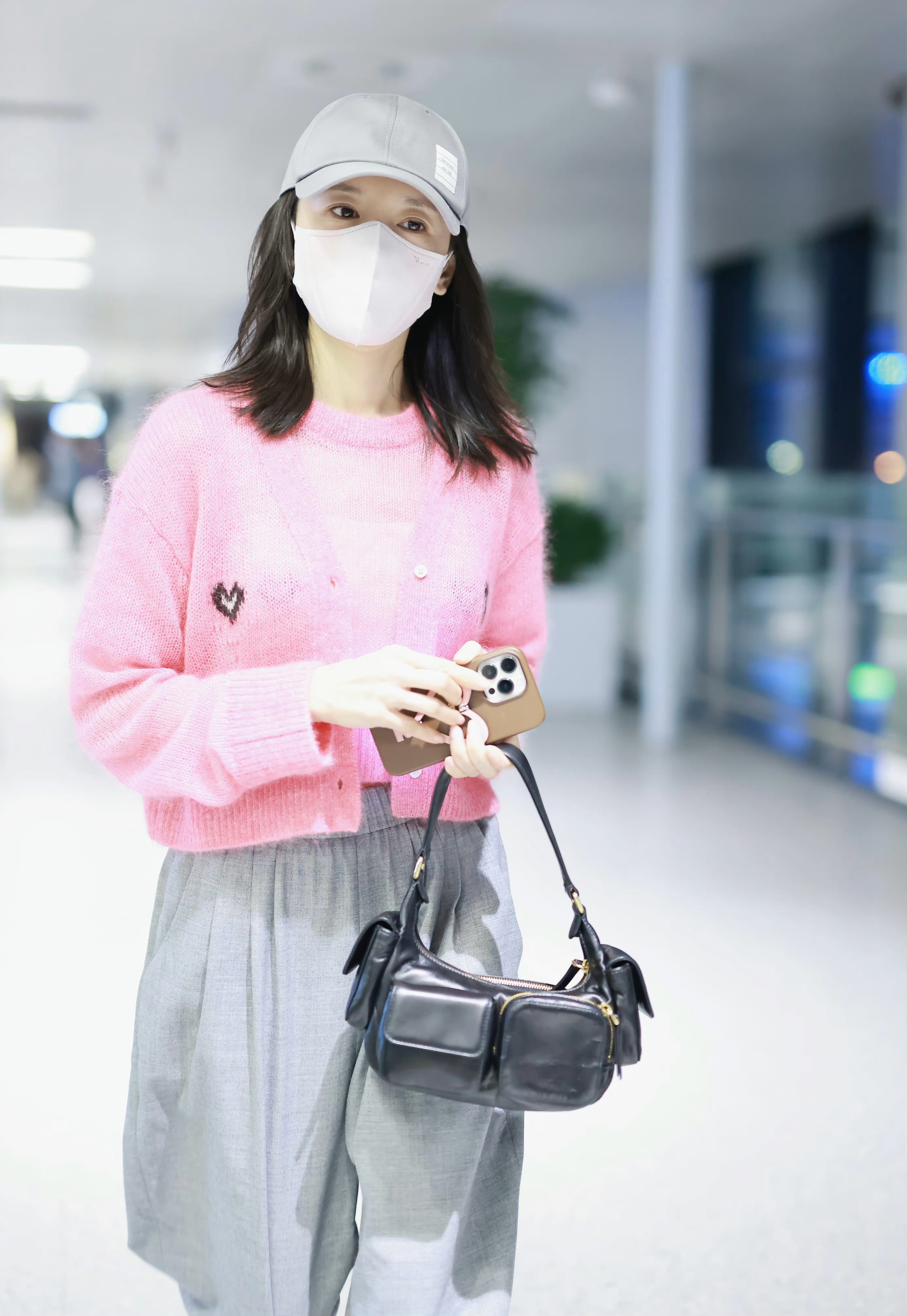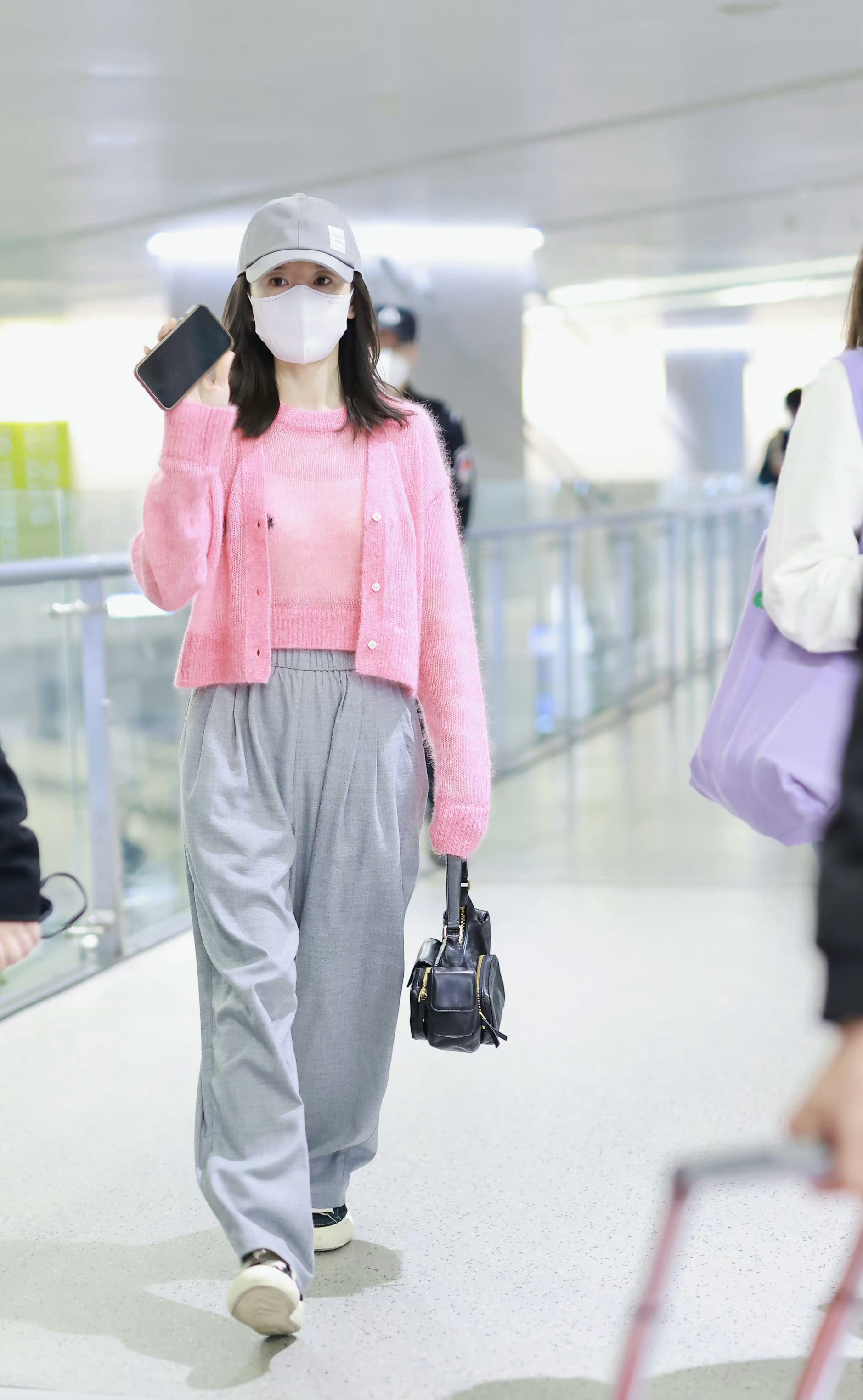 董洁机场私服,非常少见的穿起了少女粉!