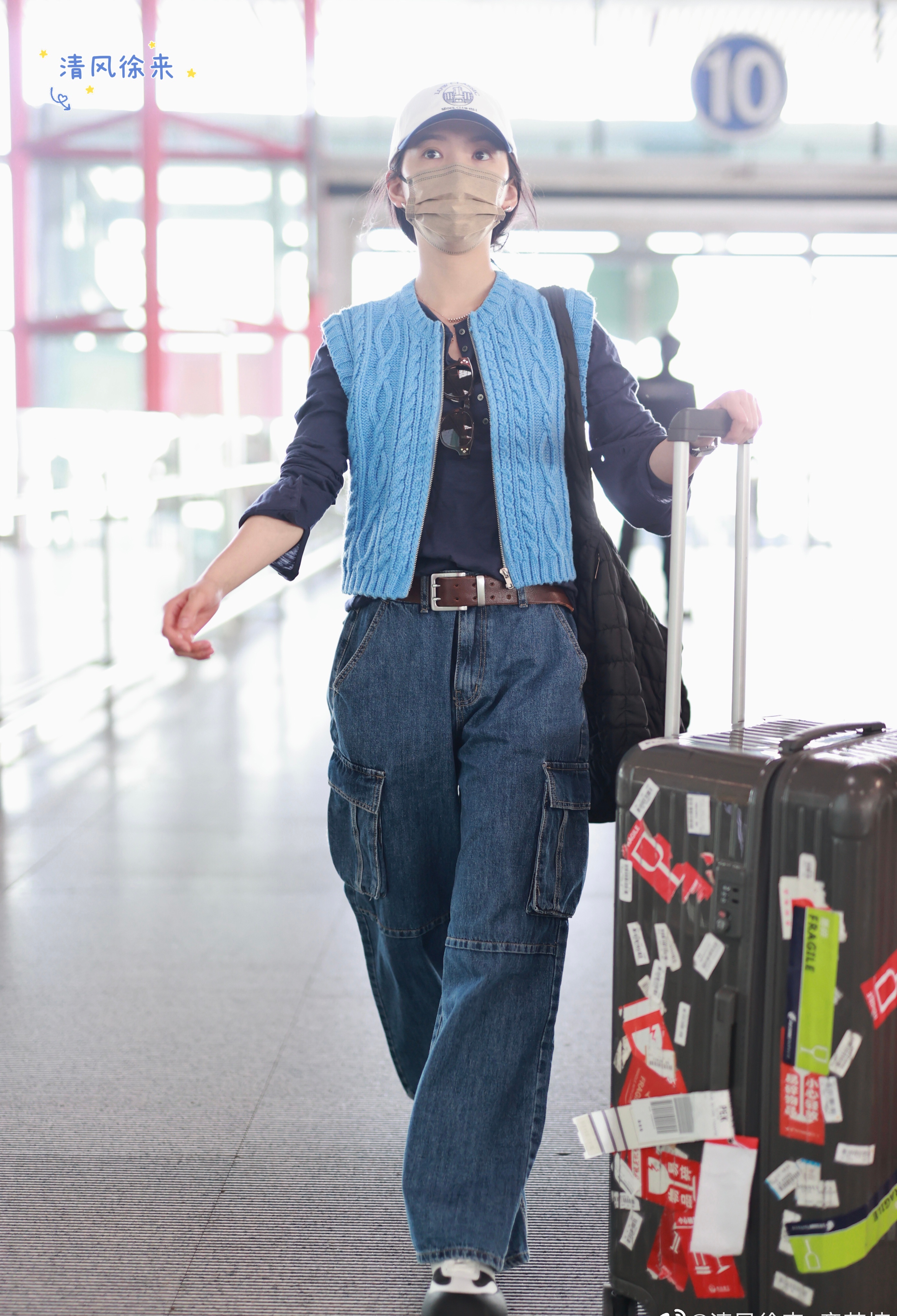 章若楠机场私服,她在韩国真没少买衣服!