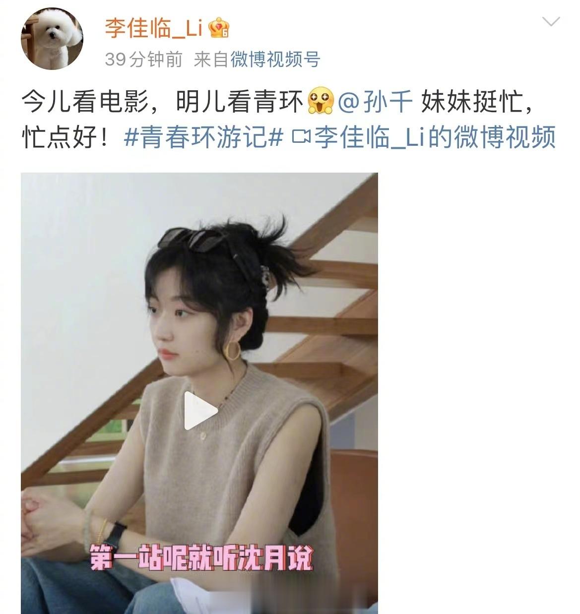 #李佳临说孙千挺忙#看青春环游记制片人主动帮忙cue流程,帮孙千宣传新电影,真的有被感动到,而且也听到了孙千表示说青环大家都太好笑了!最后相处的挺不错呀#孙千对李佳临说青环大家都太好笑了#