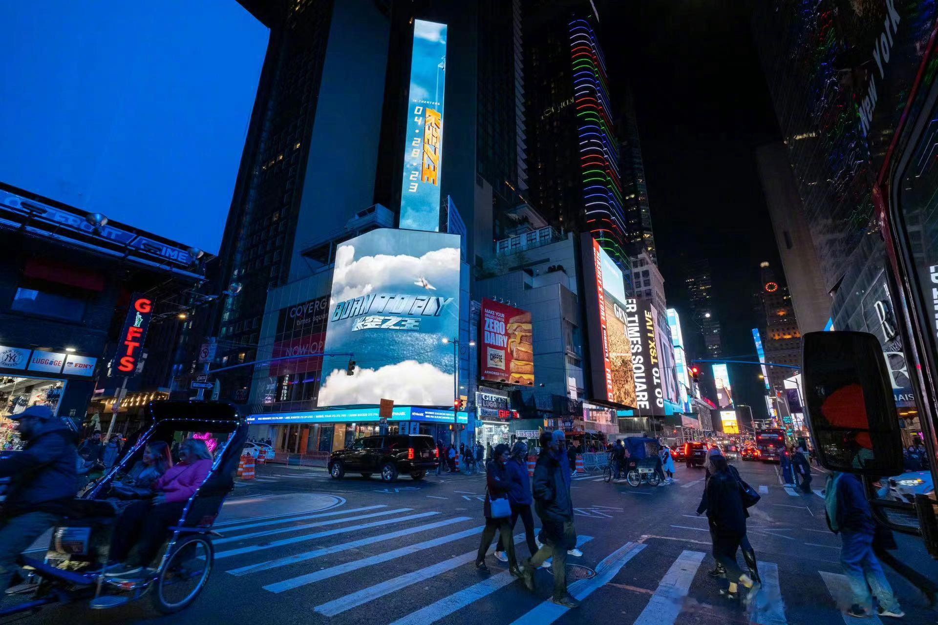 #长空之王登上纽约时代广场大屏#“且听龙吟,震啸九天”,电影《长空之王》登陆纽约