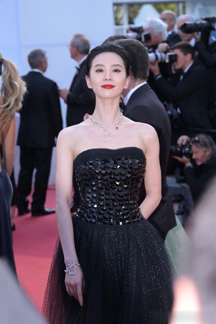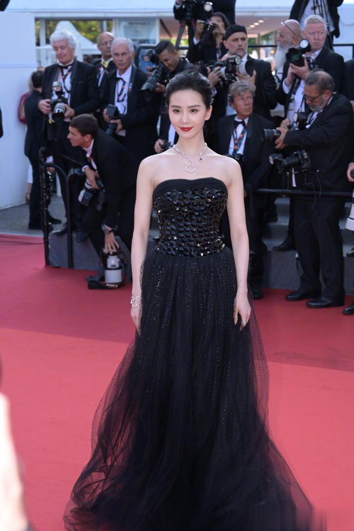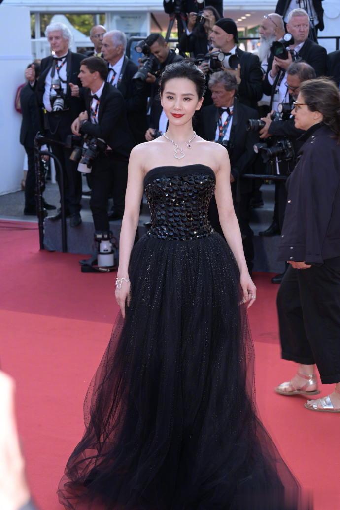 #戛纳电影节# 红毯刘诗诗黑曜石纱裙,东方美女。