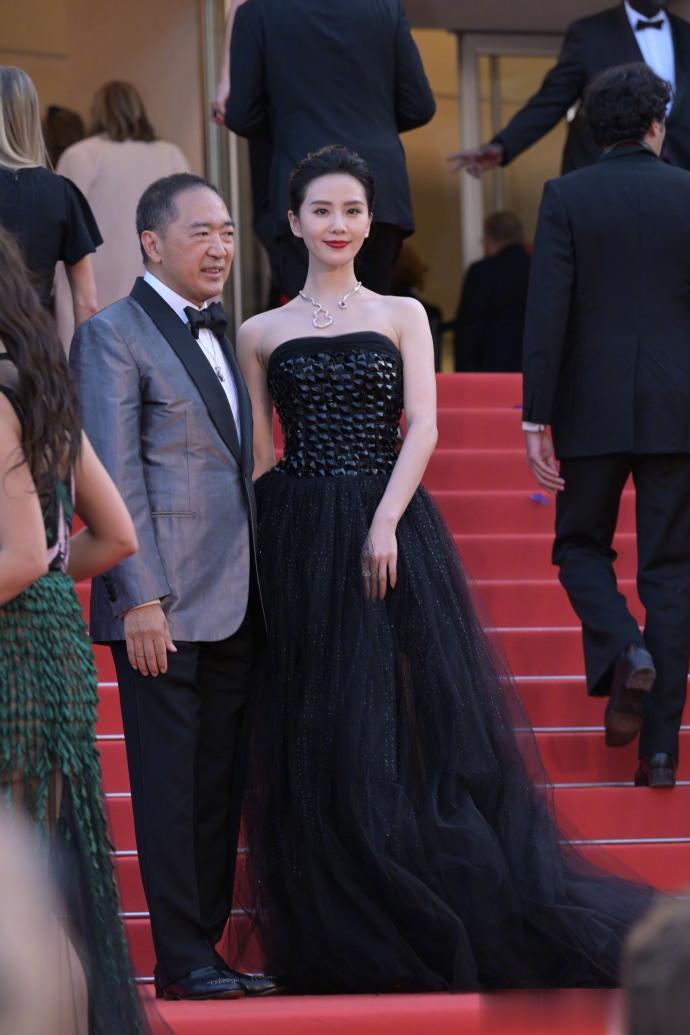 #戛纳电影节#红毯刘诗诗黑曜石纱裙,东方美女。