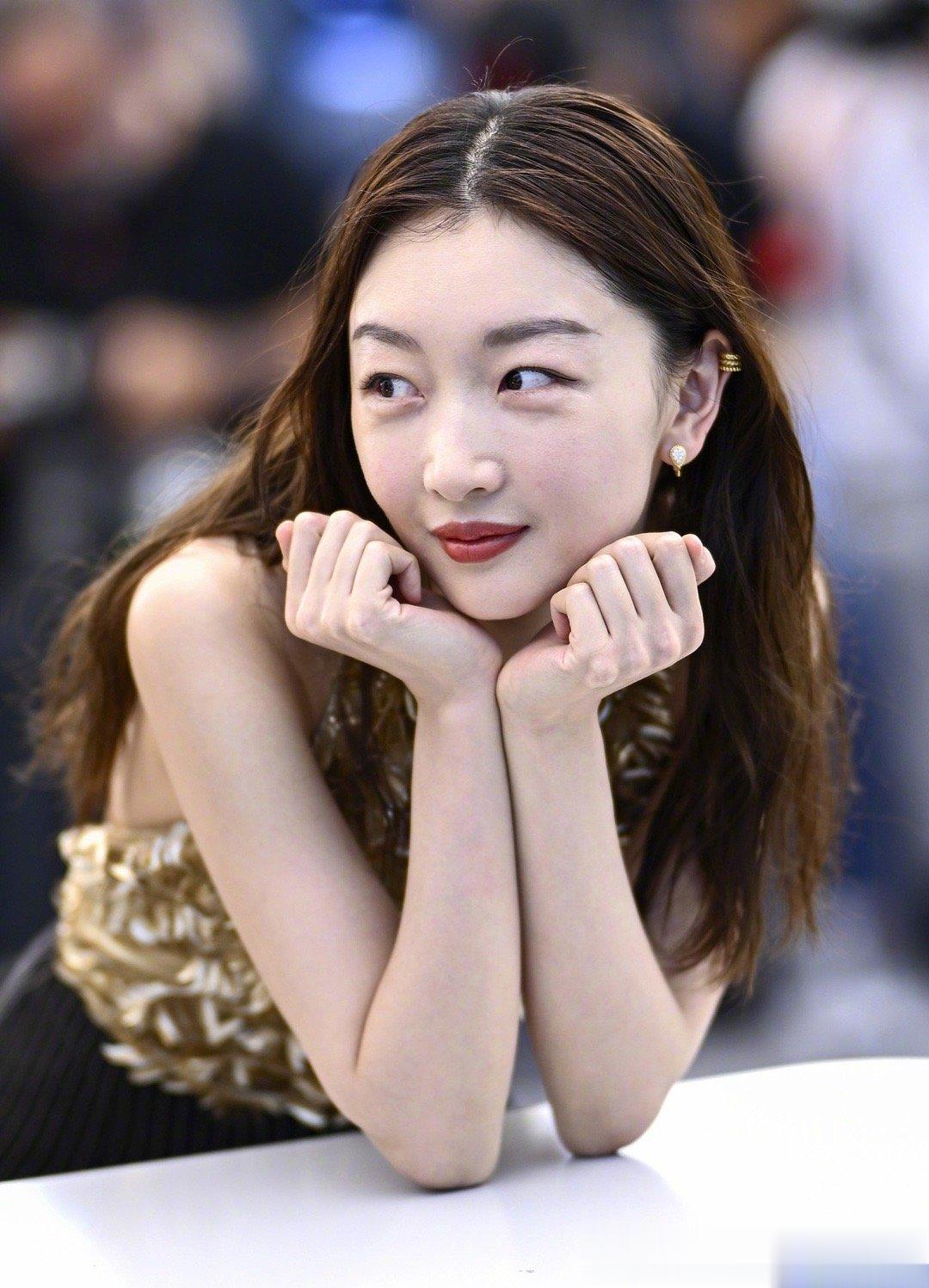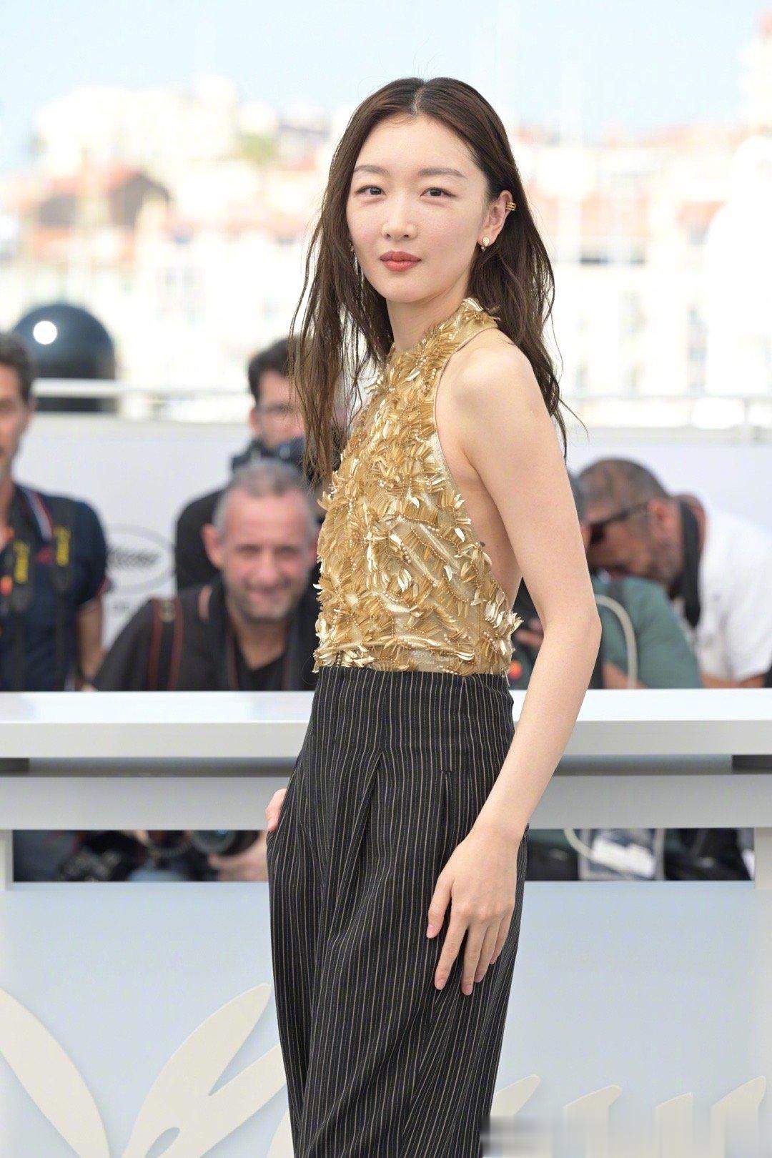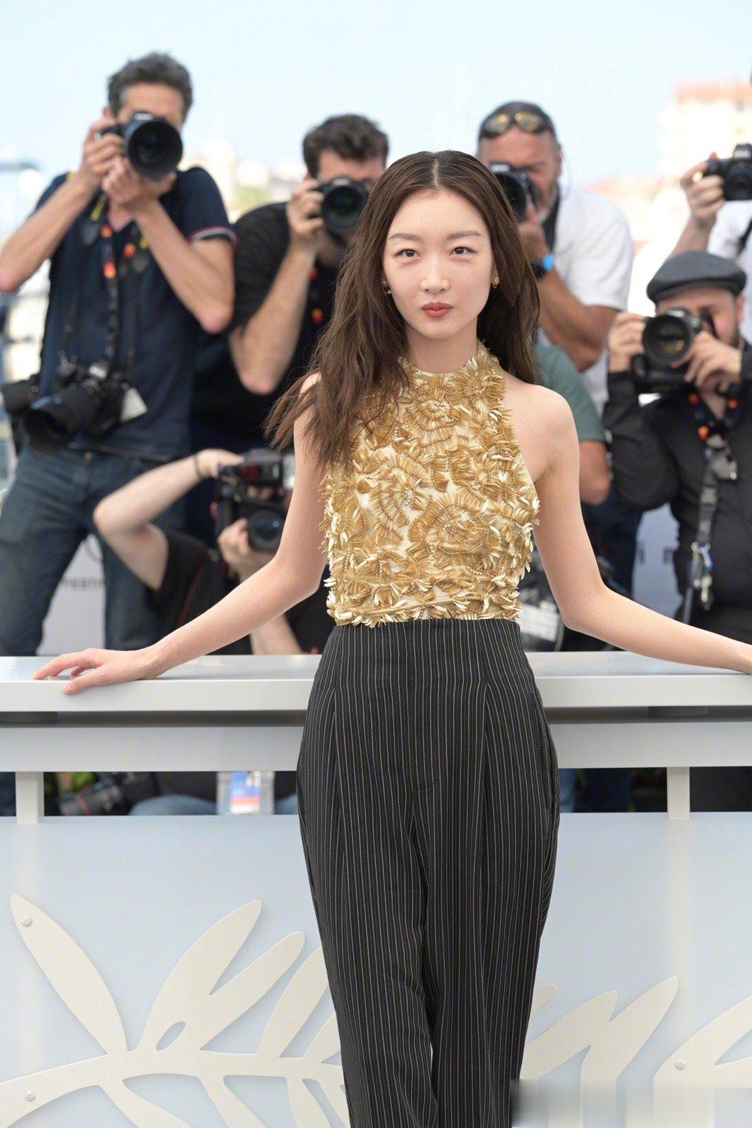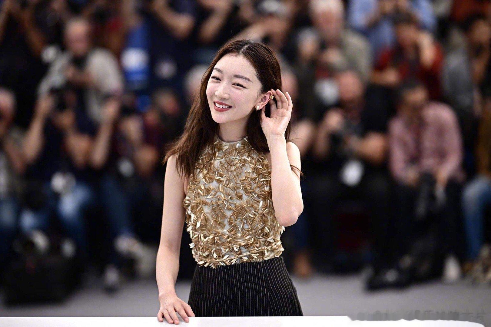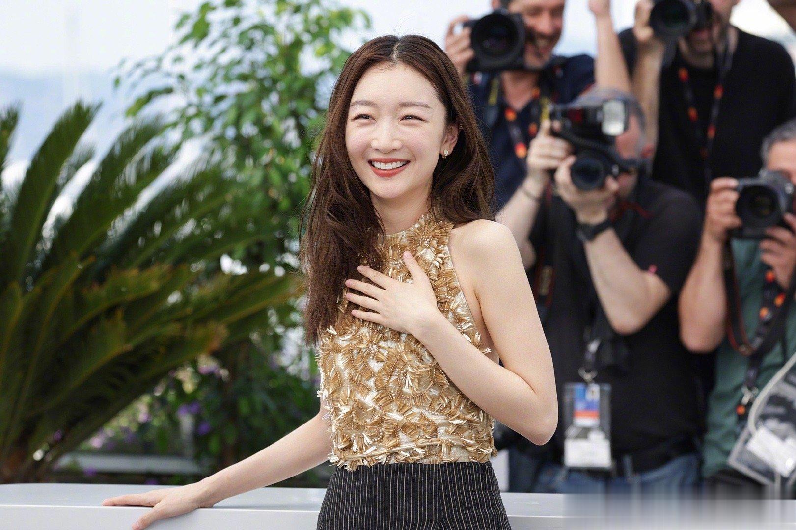 #周冬雨金色露背上衣#周冬雨亮相#戛纳电影节#《燃冬》photocall,开心