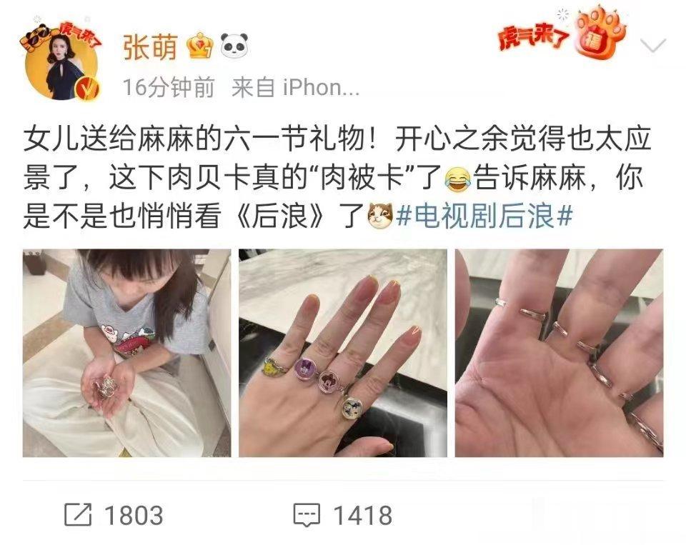#张萌女儿送了她肉被卡戒指#这个谐音梗还真的是满分了,剧里肉贝卡,剧外被戒指