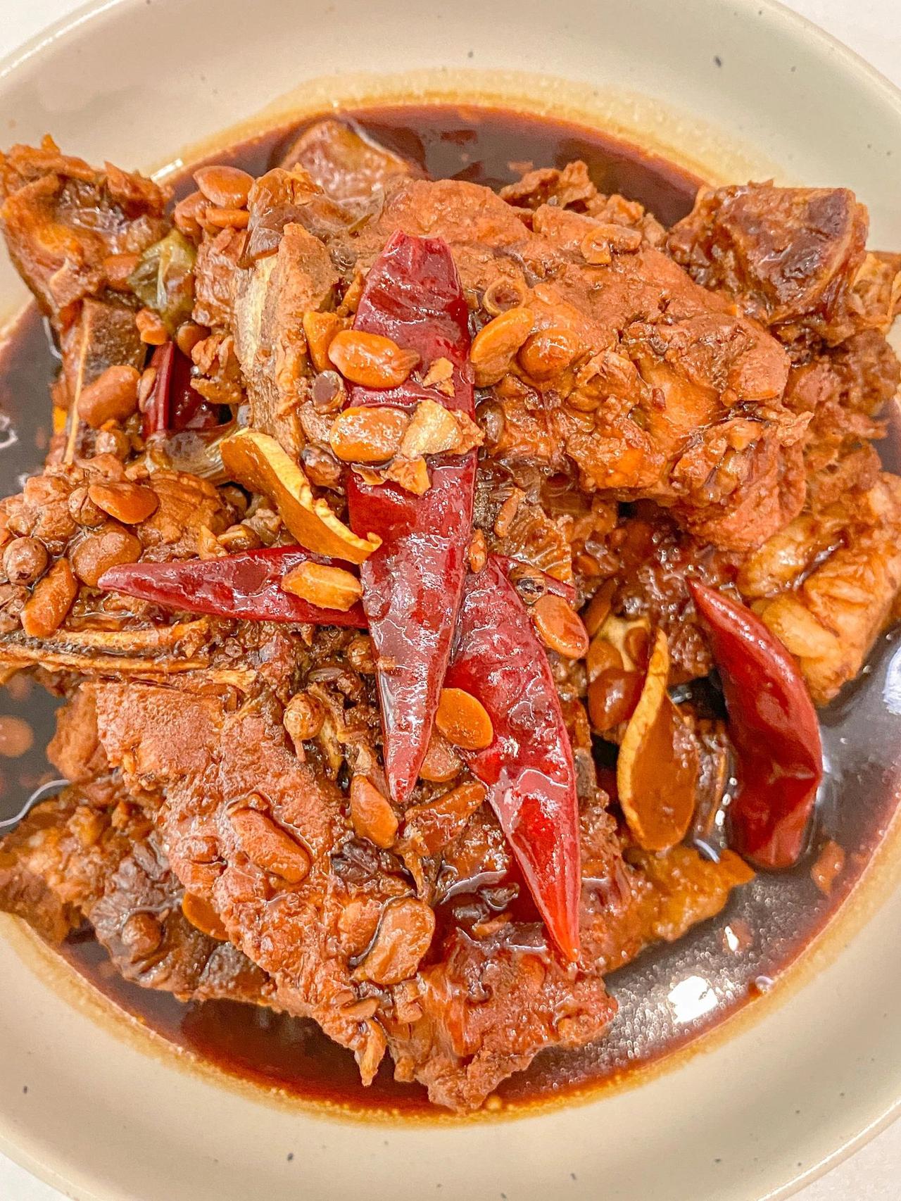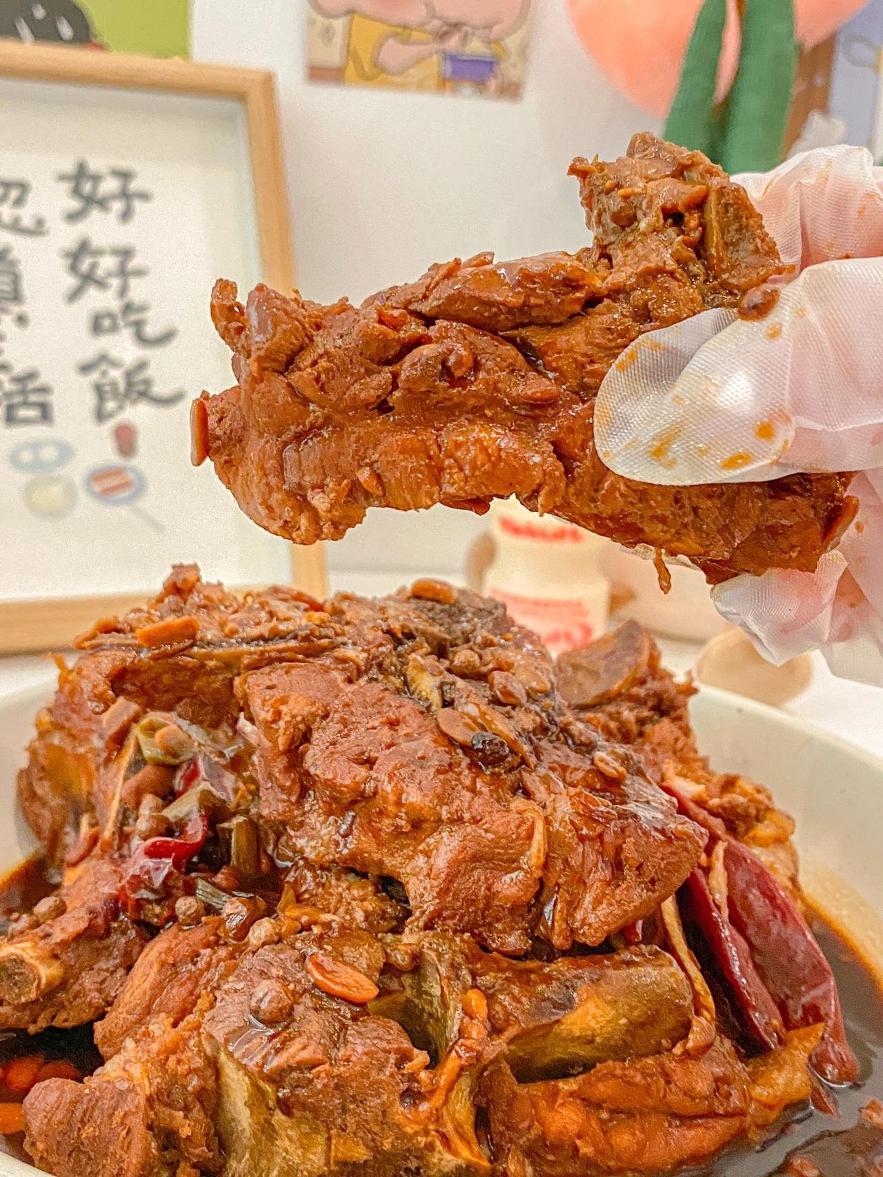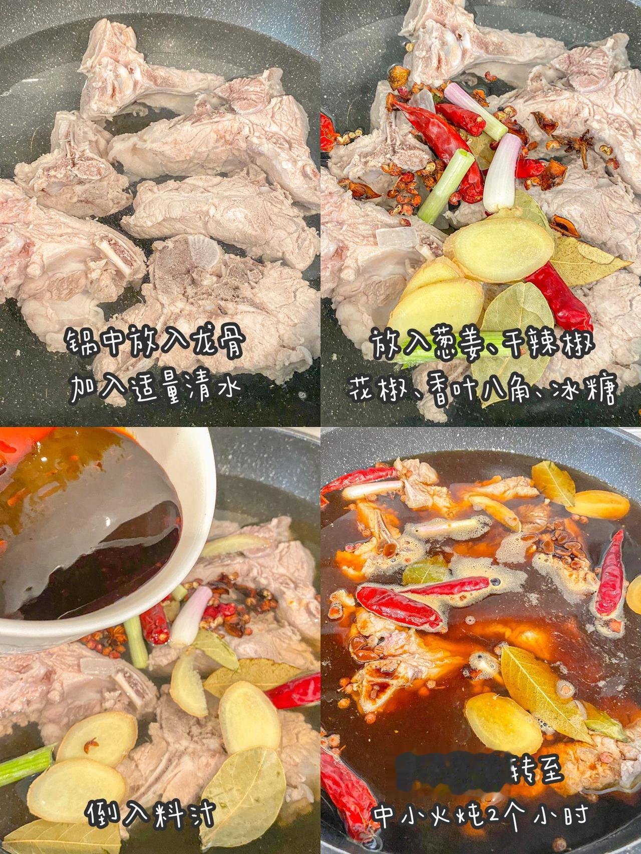 秘制大酱骨,大口吃肉的快乐,我能一直吃 买回来的骨头这样做!酱香浓郁,软烂入味,大口吃肉真的太过瘾啦,香迷糊了 食材:猪龙骨、葱姜、干辣椒、花椒、香叶、八角、冰糖 做法:1、调料汁:碗中放入4勺生抽、1勺老抽、2勺耗油、1勺鸡精、1勺盐、2勺黄豆酱搅拌均匀 2、猪龙骨洗净冷水下锅加入料酒,姜片去腥焯水,捞出用温水冲洗干净。 3、另起锅放入骨头倒入适量水,放入葱姜、干辣椒、花椒、香叶、八角、5颗冰糖,倒入料汁,大火煮开转至中小火炖2个小时即可