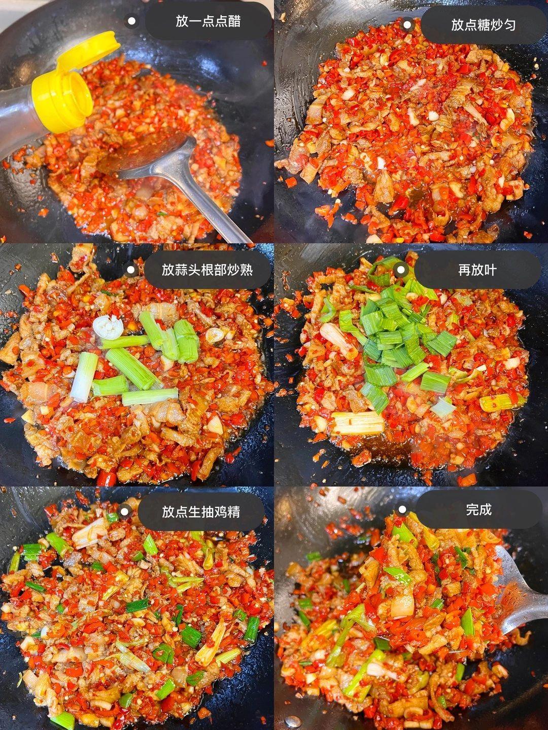 香辣的特色菜——江西小炒肉 各省市都有小炒肉,但是做法味道不一样,各有各的特色,也算是一道家常菜,今天分享的是江西小炒肉,又叫江西剁肉,湖南这边也有这种做法。做出来的肉,干香油辣,比较下饭,很适合能够吃辣的人 食材:五花肉,瘦肉,红辣椒,蒜头,蒜苗 调料:生抽,胡椒粉, 盐,老抽,醋,糖,鸡精,米酒 做法步骤:如图所示 小贴士:五花肉炒出油炒干一些比较香,吃的时候味道层次比较分明 下瘦肉翻炒均匀以后可以放点糖,醋,米酒哦,吃起来更香,全程不要放一滴水