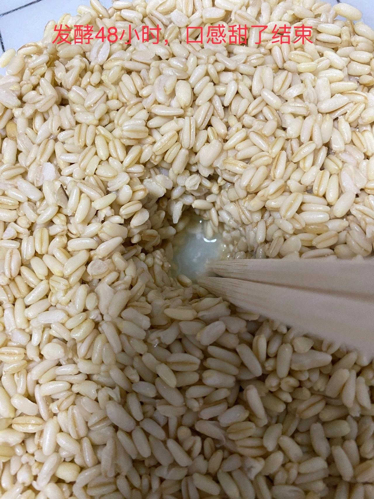 西北酒酿;南方有酒酿,北方有甜胚子!相同的做法,不同食材却有着巨大差异的口感。 南方酒酿以糯米为原料,拌酒曲发酵而成,北方甜胚子以莜麦为原料,也是拌酒曲发酵而成,两者同为盛夏的解暑神器。 两者制作原理相同,细节上稍有差别。莜麦质地较硬,我尝试了多种蒸米或电饭煲煮饭模式,都不及先泡米在水煮的口感, 酒曲上,多次试做个人认为安琪甜酒曲和甜胚子是绝配 发酵成功的甜胚子最简单的吃法是用凉白开兑点白糖,再舀几勺甜胚子,搅拌搅拌就吃,一勺甜胚子入口,咬开莜麦的外皮麦汁如爆浆般充盈你的味蕾,冰镇一下会更爽,口口都是好滋味, 真的强烈建议大家都试试💯最后跟大家说一下,甜胚子发酵成功之后,不像酒酿有很多的酒水,他的成品比较干,甜了就行