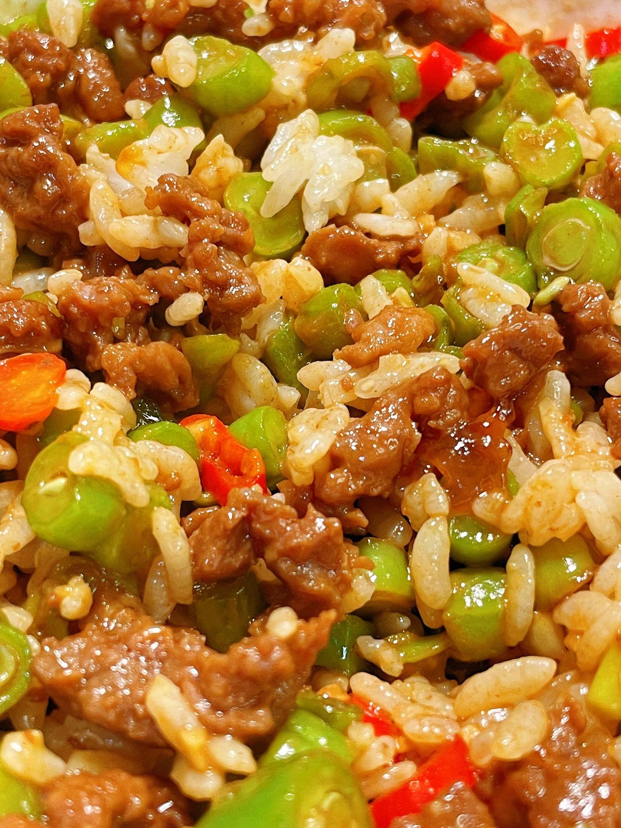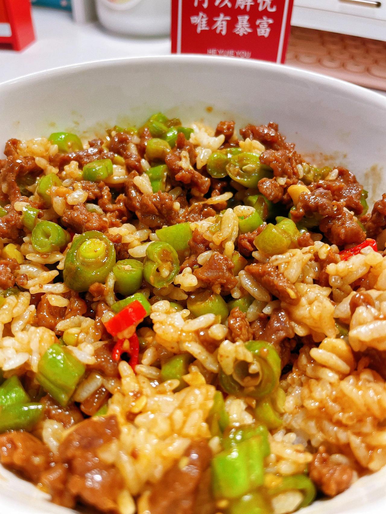 天气炎热吃饭没胃口,今天分享一道豆角牛肉的做法,香辣下饭,好吃到爆 准备食材:豆角,牛肉,葱,蒜,小米辣 调一个酱汁:一勺生抽,一勺老抽,一勺淀粉,小半碗清水,搅匀 1、葱蒜切沫,小米辣、豆角、牛肉切粒,牛肉粒加生抽、料酒腌制十分钟 2、冷锅下油,油热后倒入豆角翻炒,加入少量的盐,翻炒三分钟盛出备用 3、锅中再倒油,油热后倒入牛肉,炒至变色后加入蒜末、葱花、小米辣炒出香味,然后倒入豆角,和调好的酱汁,炒至浓稠后出锅 豆角一定要炒熟,炒牛肉时多放一点油会比较好吃