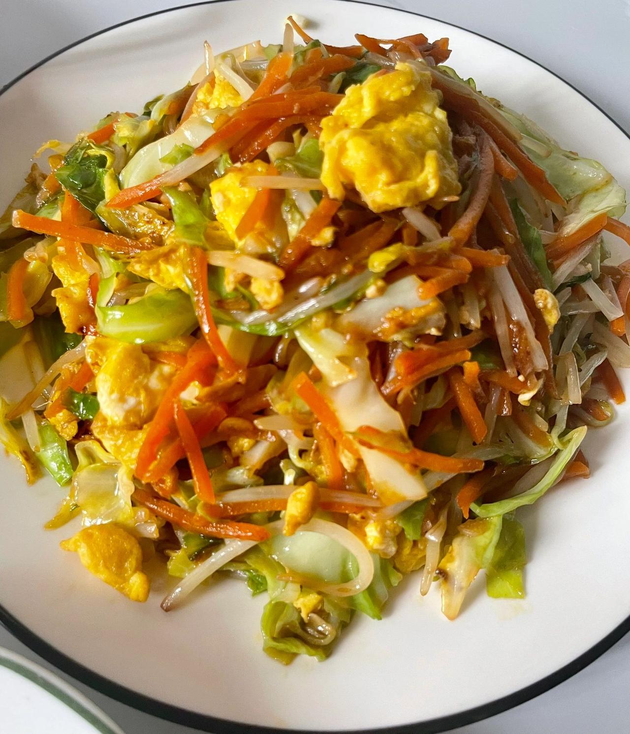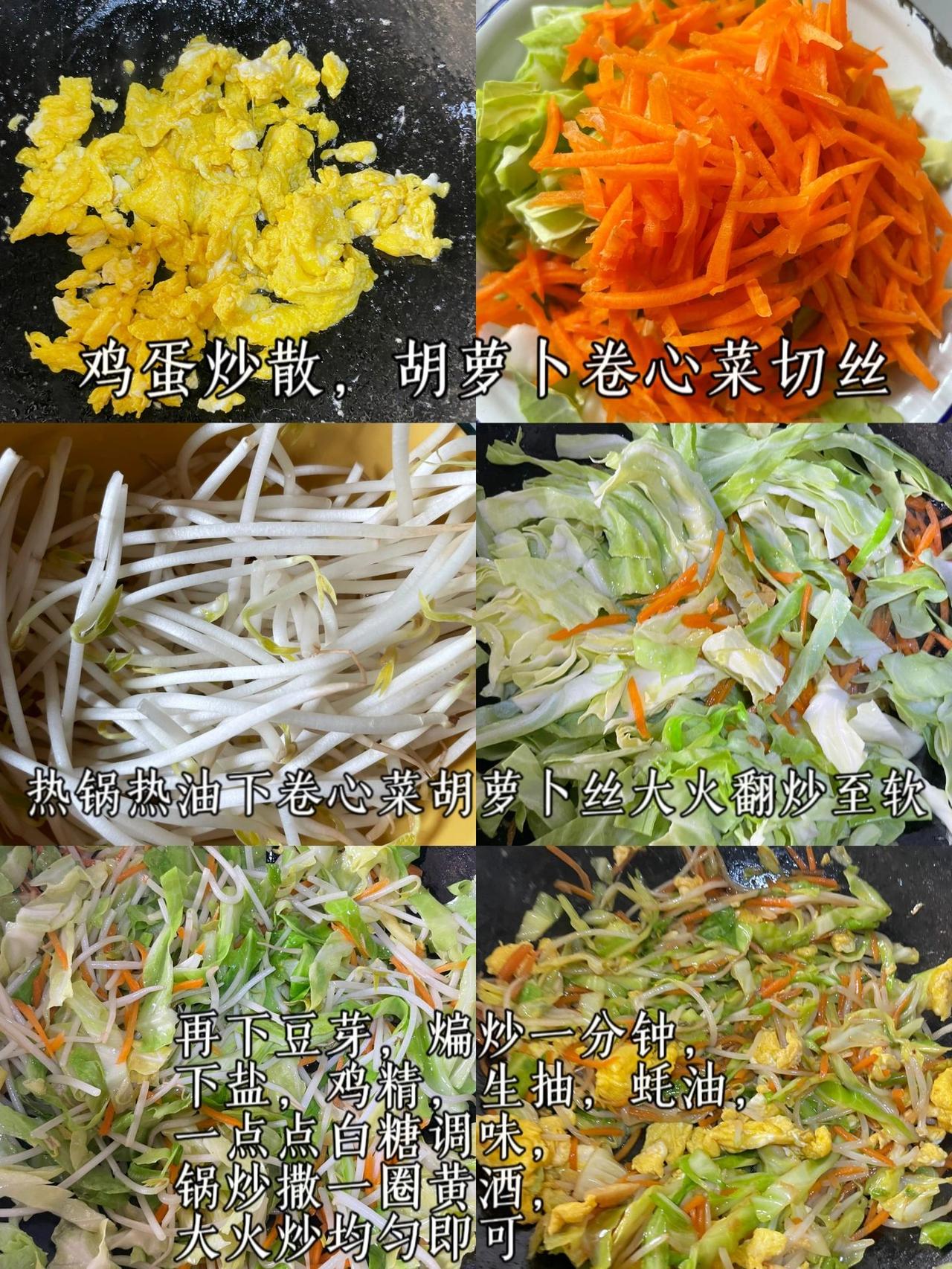 5分钟学会一道炒时蔬 天气太热,烧荤菜真的太累了 今天把冰箱里的剩余的蔬菜给炒了,没想到还挺好吃!还低卡 材料:胡萝卜,卷心菜,鸡蛋 步骤戳最后一张图。 真的超级简单,全程只要大火翻炒,最后调味就行。想吃辣的加小米辣爆香再开始炒就可以!超好吃