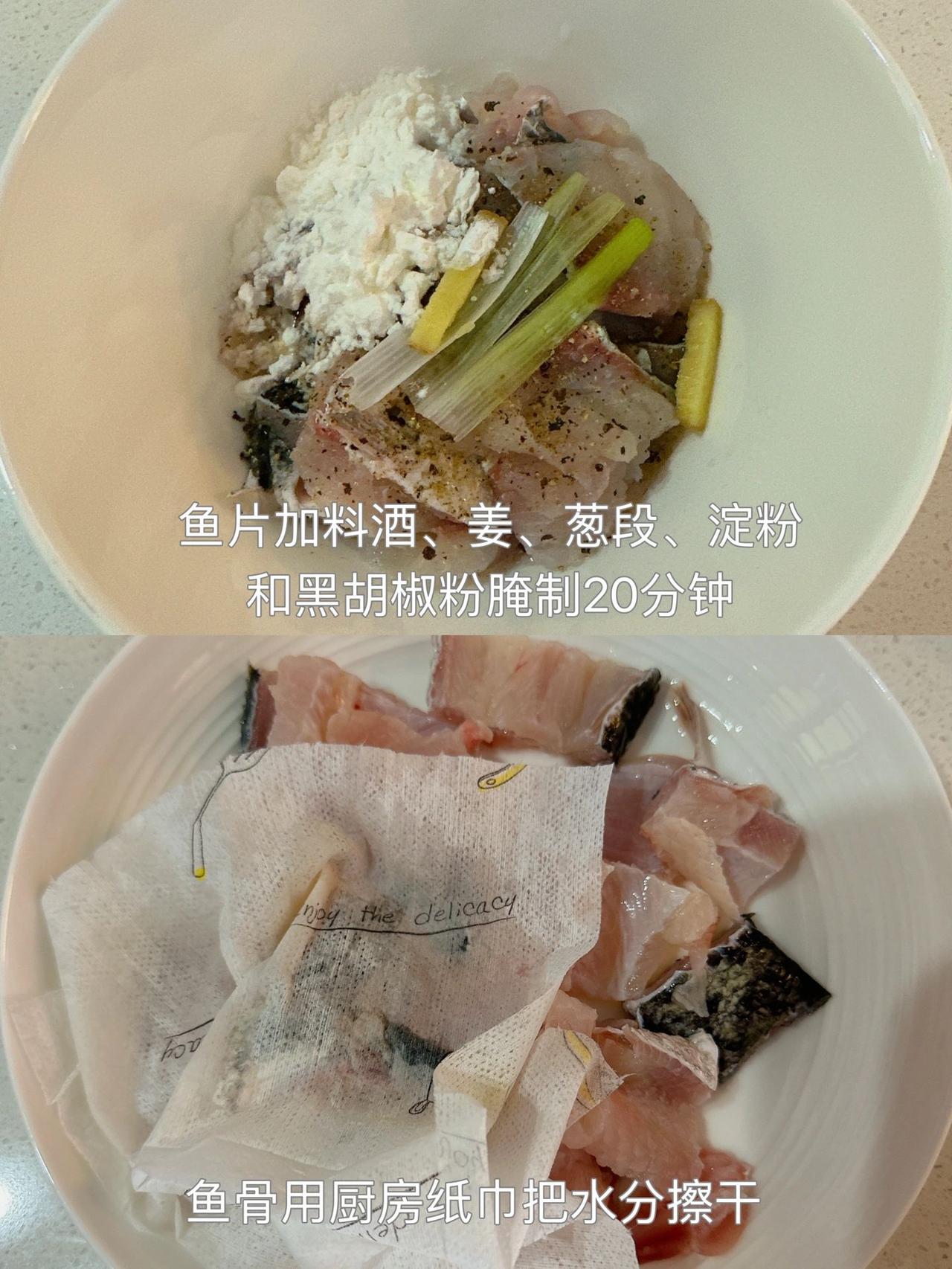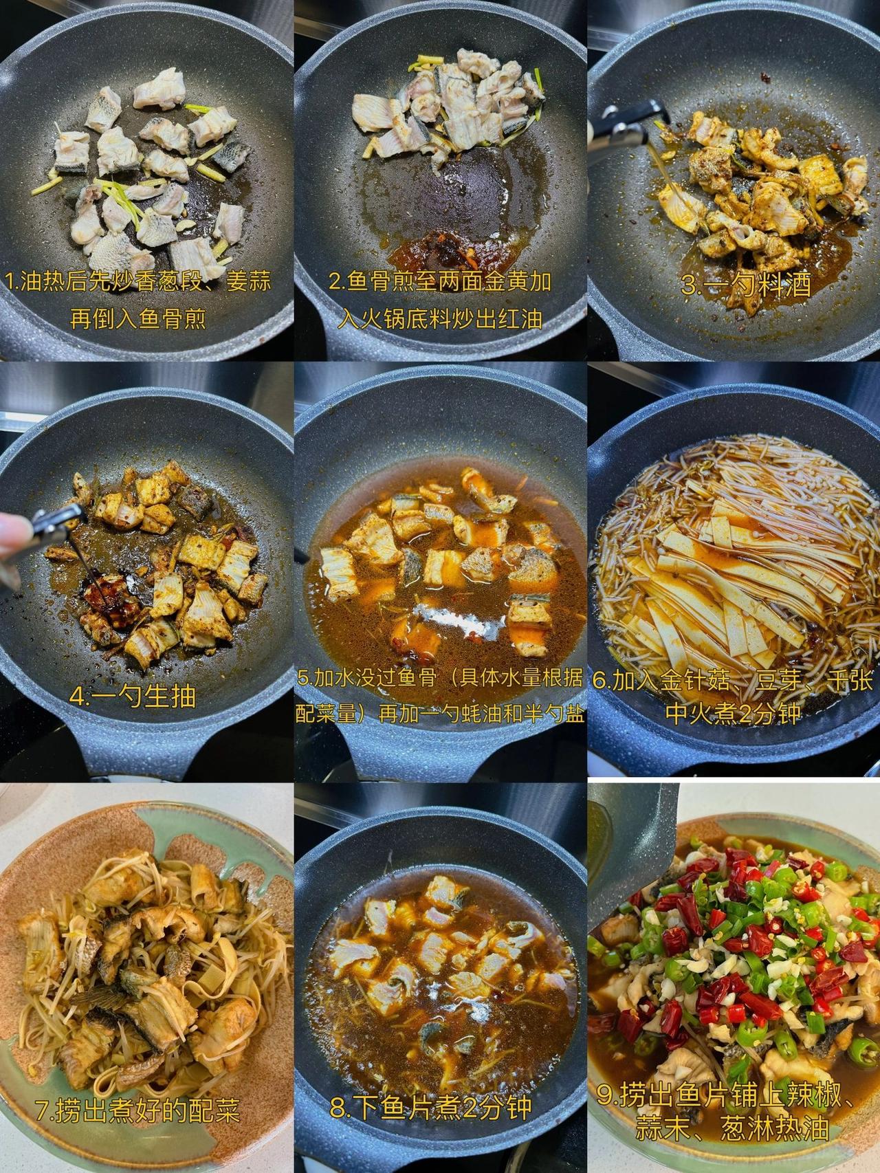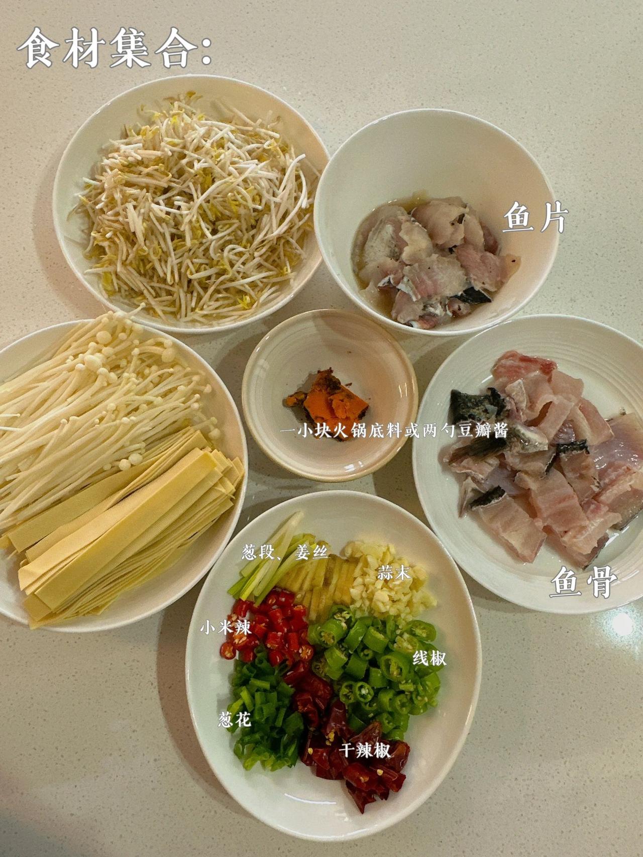 香辣水煮鱼,嘎嘎下饭,好吃不腻~ 夏日炎炎。香辣水煮鱼配上一罐汽水简直太清爽了~这是一道做法简单的下饭菜,在家动动小手就能品尝 食材:黑鱼、豆芽、千张、金针菇(配菜根据自己喜好)、小块火锅底料/豆瓣酱两勺、青红辣椒、干辣椒、葱、姜、蒜 步骤:1、分离鱼片和鱼骨,鱼片加入料酒、姜、葱段、淀粉和黑胡椒粉抓匀腌制20分钟;鱼骨用厨房纸巾擦干水分备用 2、油热后先炒香葱段、姜丝、蒜末再倒入鱼骨煎至两面金黄,加入火锅底料或两勺豆瓣酱炒出红油 3、加入一勺料酒、一勺生抽简单翻炒加水没过鱼骨(具体水量根据配菜量),再加一勺蚝油、半勺盐 4、加入金针菇、豆芽、千张中火煮2分钟后捞出配菜和鱼骨,下鱼片再煮2分钟捞出,铺上青红椒、蒜末、小葱淋上热油(喜欢吃辣口的可以锅内热油时放若干干辣椒)