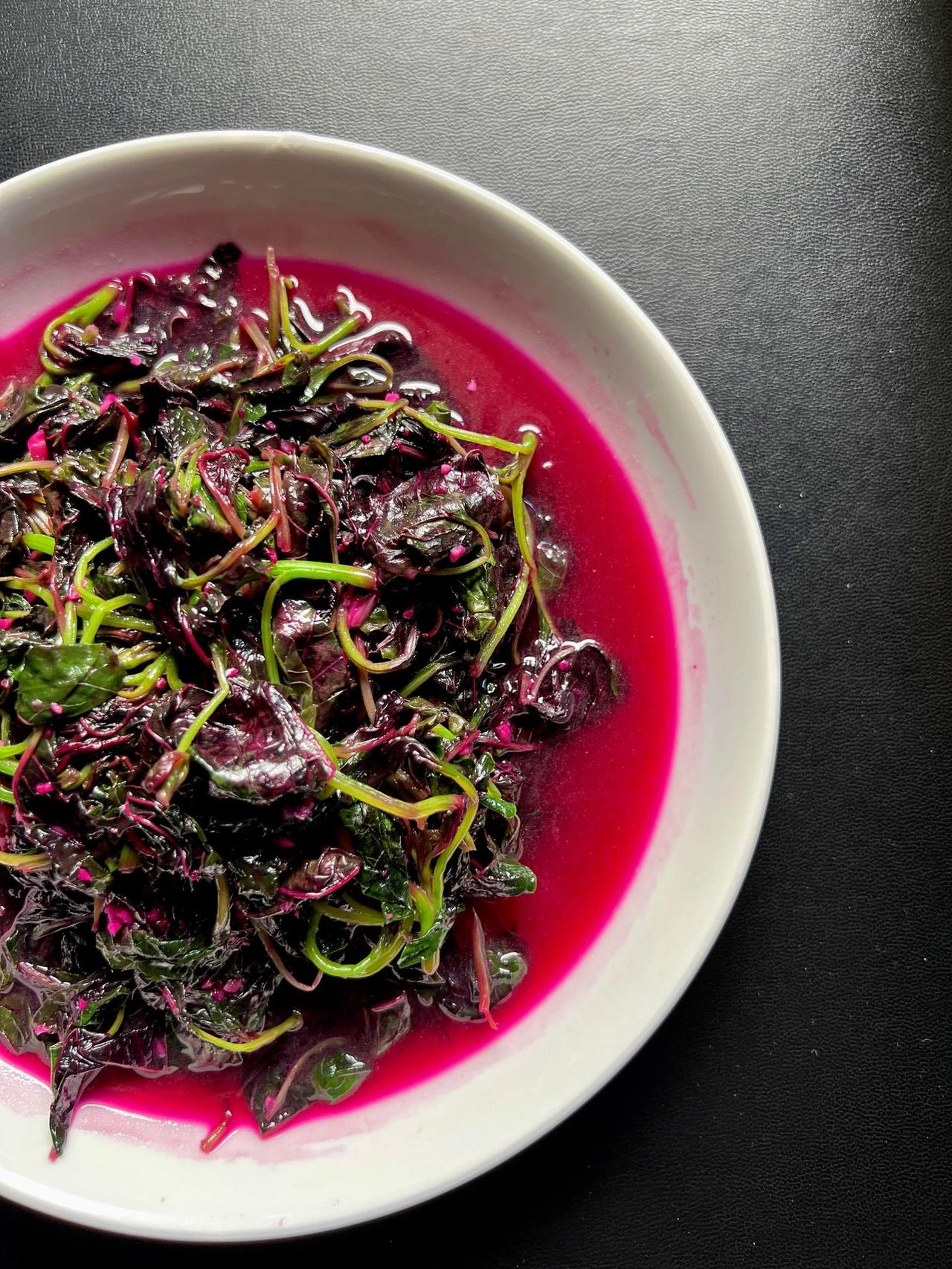 一人食,蒜片红汗菜,不摆了 小时候叫它“红菜”,粉色的红汗菜,把汤汁舀到碗里,饭也变成粉红色。 哄孩子的一道好菜。 很多地方叫法都不一样,有的地方叫“红苋菜”,有的叫“汉菜”。 都是它,粉色的它。 这种菜是粗纤维, 煮来做汤,就没那么好吃了。 得炒,要放猪油,大火,才炒的软。 蒜片,也是提味的关键。 做法:红汗菜洗干净,沥干 蒜,洗干净,切片备用 热锅,下猪油,加入蒜片 炒香后,倒入红汗菜,爆炒,快速出锅 好吃得很,不摆了!一个人,更要好好吃饭。开火,做饭,过得热气腾腾