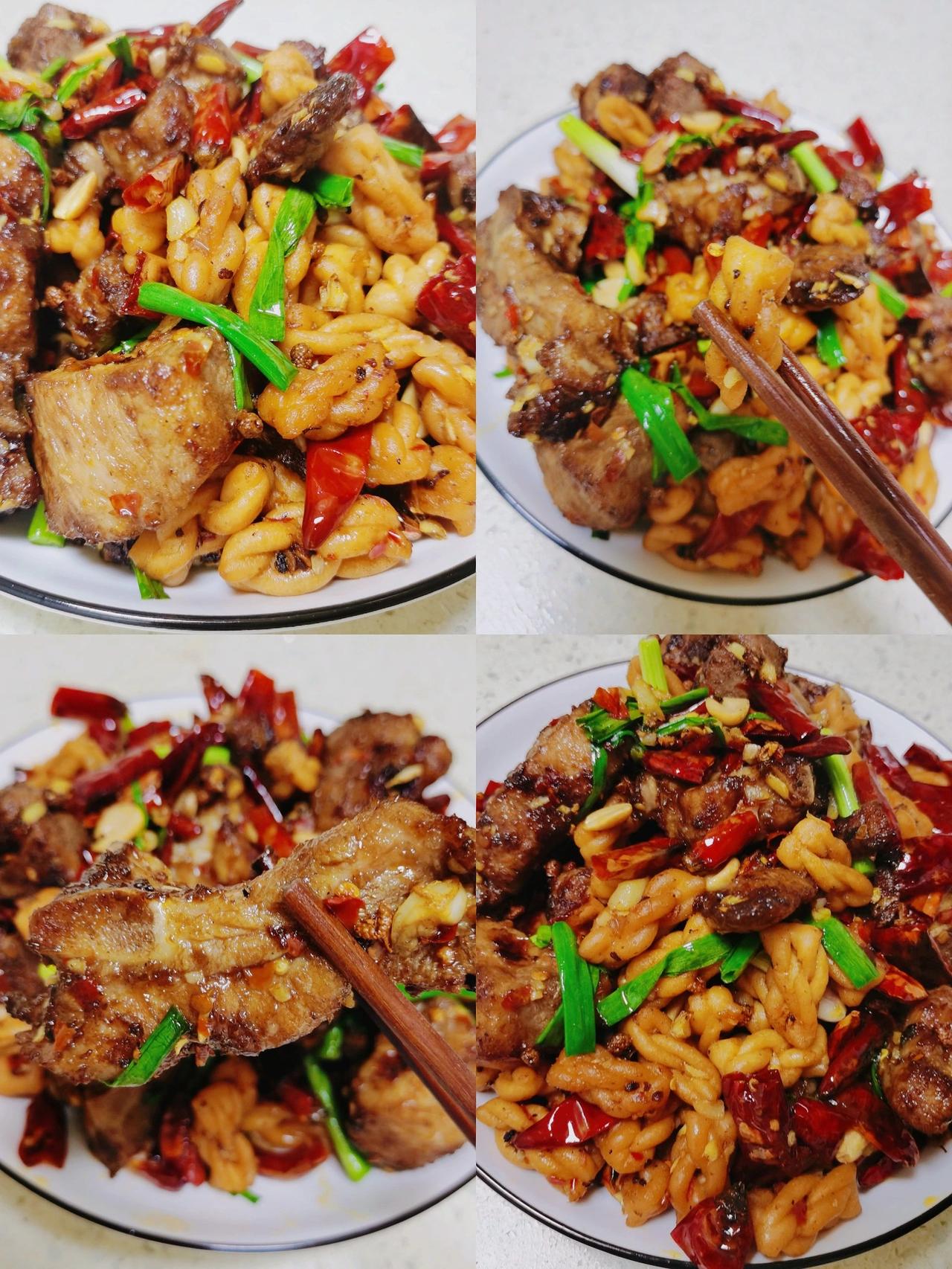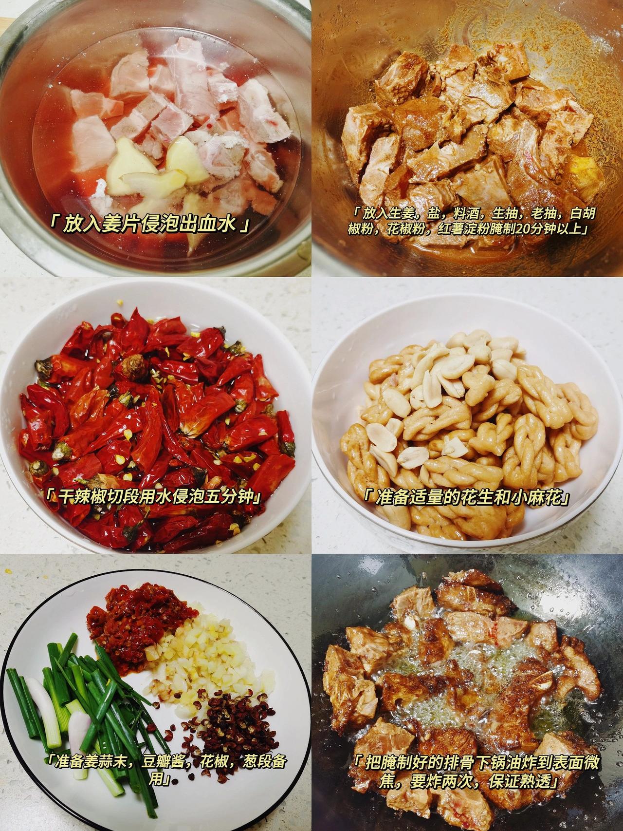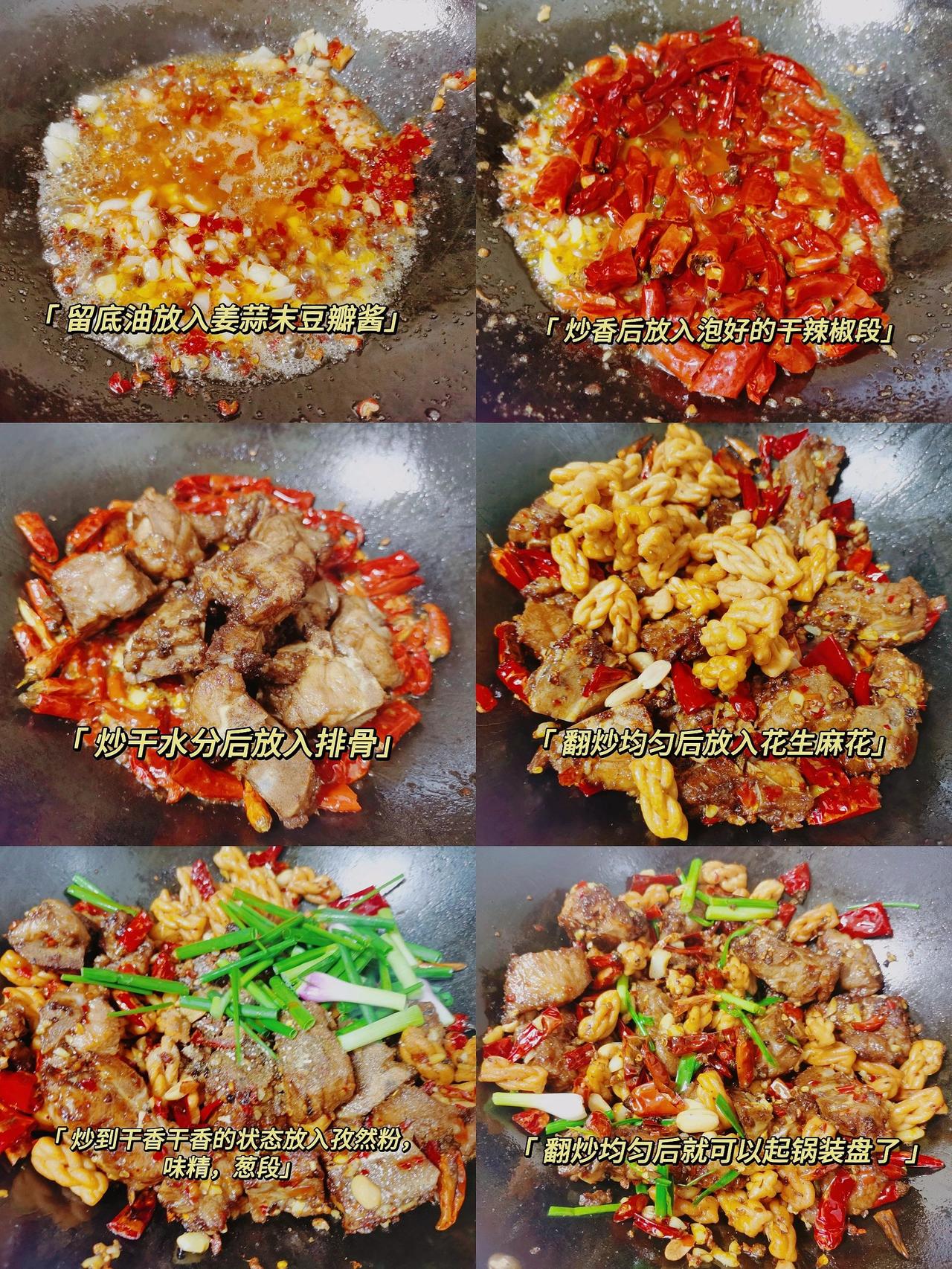 巨好吃的辣子排骨强烈安利 发现了一个排骨超级好吃的做法,不干不柴不油腻,吃起来干香干香的,非常适合追剧和下酒的时候吃 食材:排骨,小麻花,花生。 步骤:1、排骨提前泡出血水洗净,放入生姜,盐,料酒,生抽,老抽,白胡椒粉,花椒粉,红薯淀粉腌制二十分钟以上。 2、腌制好的排骨油炸两遍,保证熟透,捞出备用。 3、锅里留底油放入姜蒜末豆瓣酱炒香,再放入泡过水的干辣椒段,炒干水分后放入排骨,翻炒均匀后放入排骨。 4、炒香后放入麻花和花生,炒制干香的状态,放入孜然粉,味精和葱段,翻炒均匀后即可。 炒制的过程中不要放盐,不然会很咸