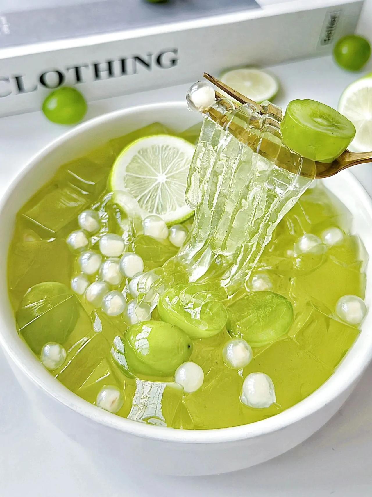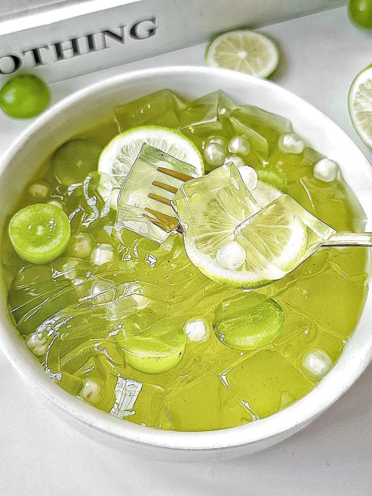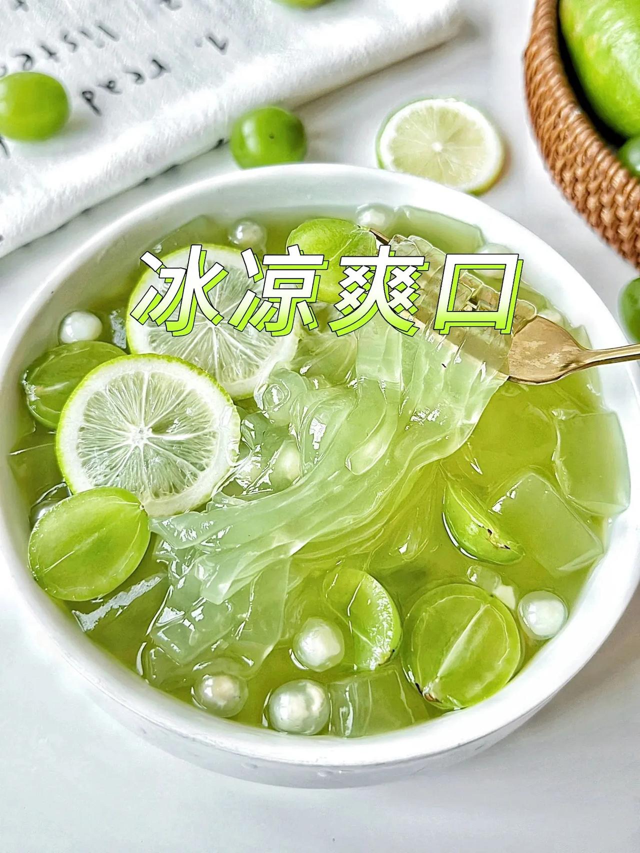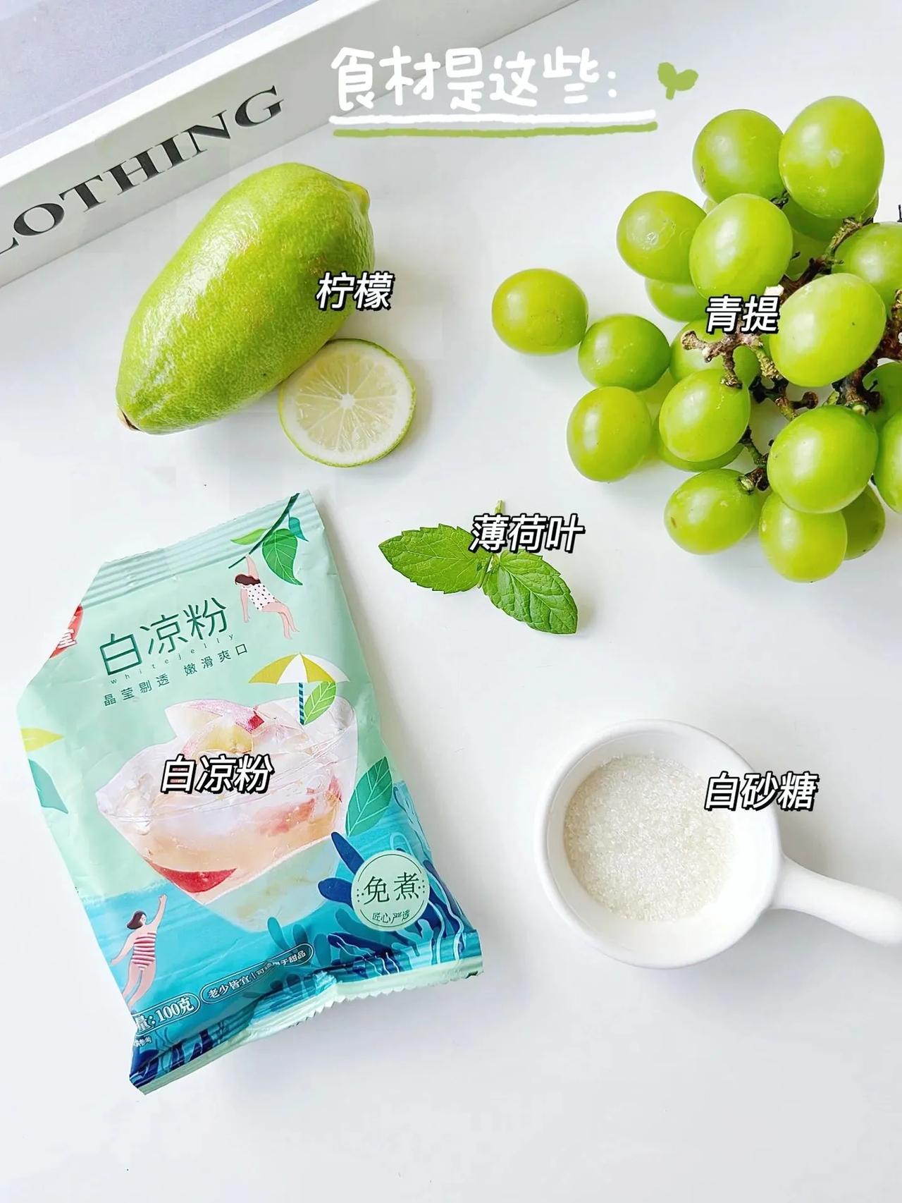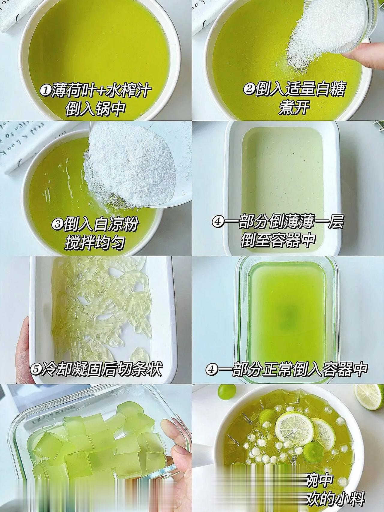 跟摆摊阿姨学来的!简直爽爆了! 炎炎夏日必备这一碗呀!薄荷冰面!!冰凉Q弹!清甜爽口!高温天来一碗!太解暑了,做法巨简单! 做法: 1、薄荷叶+水榨汁倒入锅中,再倒入适量白糖煮开; 2、倒入白凉粉搅拌均匀,一部分倒薄薄一层倒至容器中,冷却凝固后切条状; 3、一部分正常倒入容器中,冷却凝固后切成块状 组装到碗中; 4、加入青提等喜欢的小料即可。