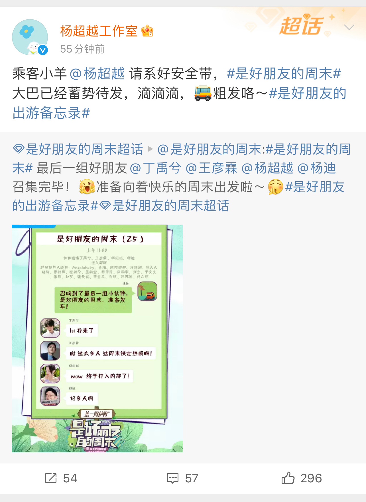 #丁禹兮杨超越加入群聊#丁禹兮杨超越官宣加盟《是好朋友的周末》两人三天两夜的互怼
