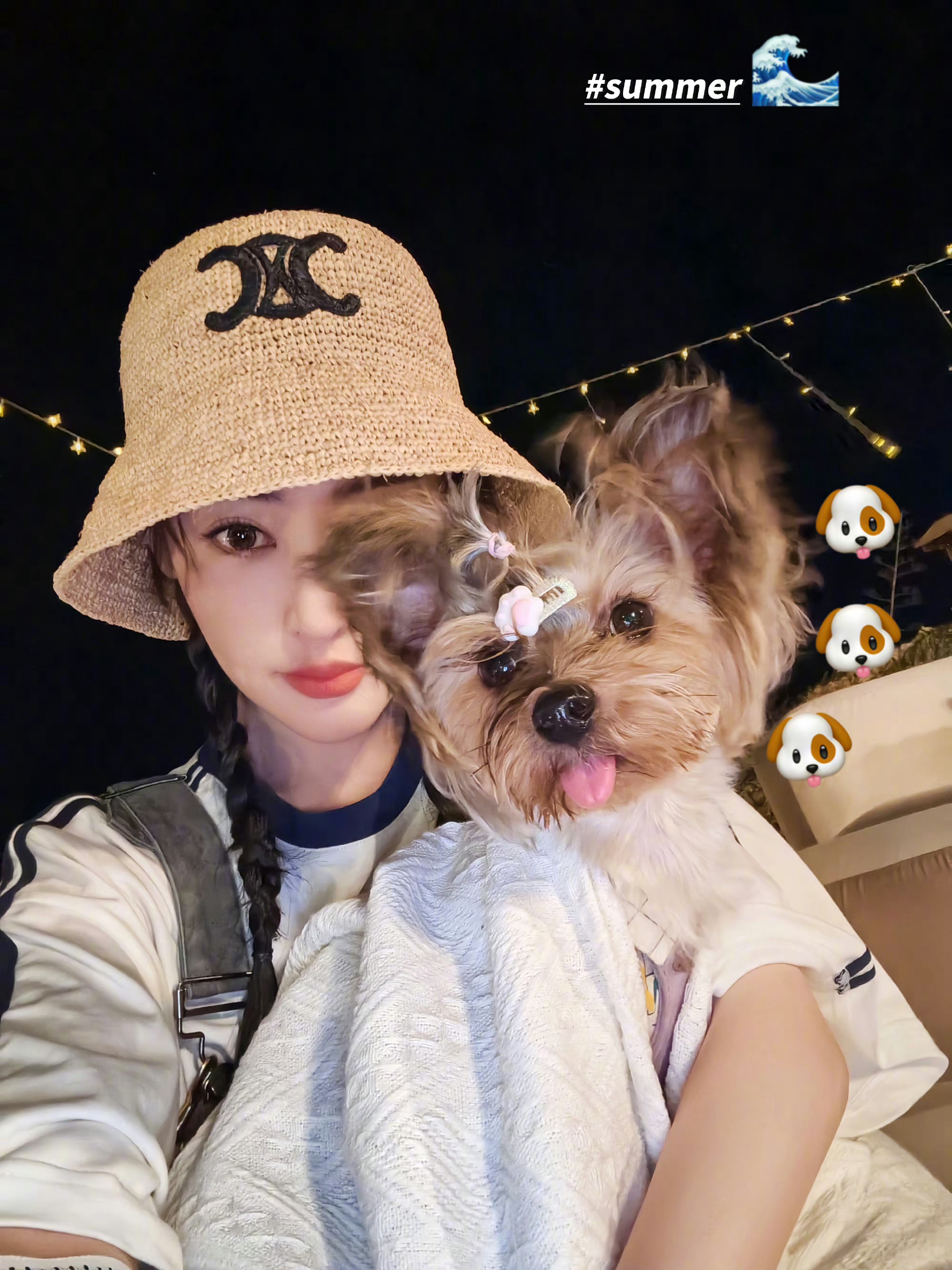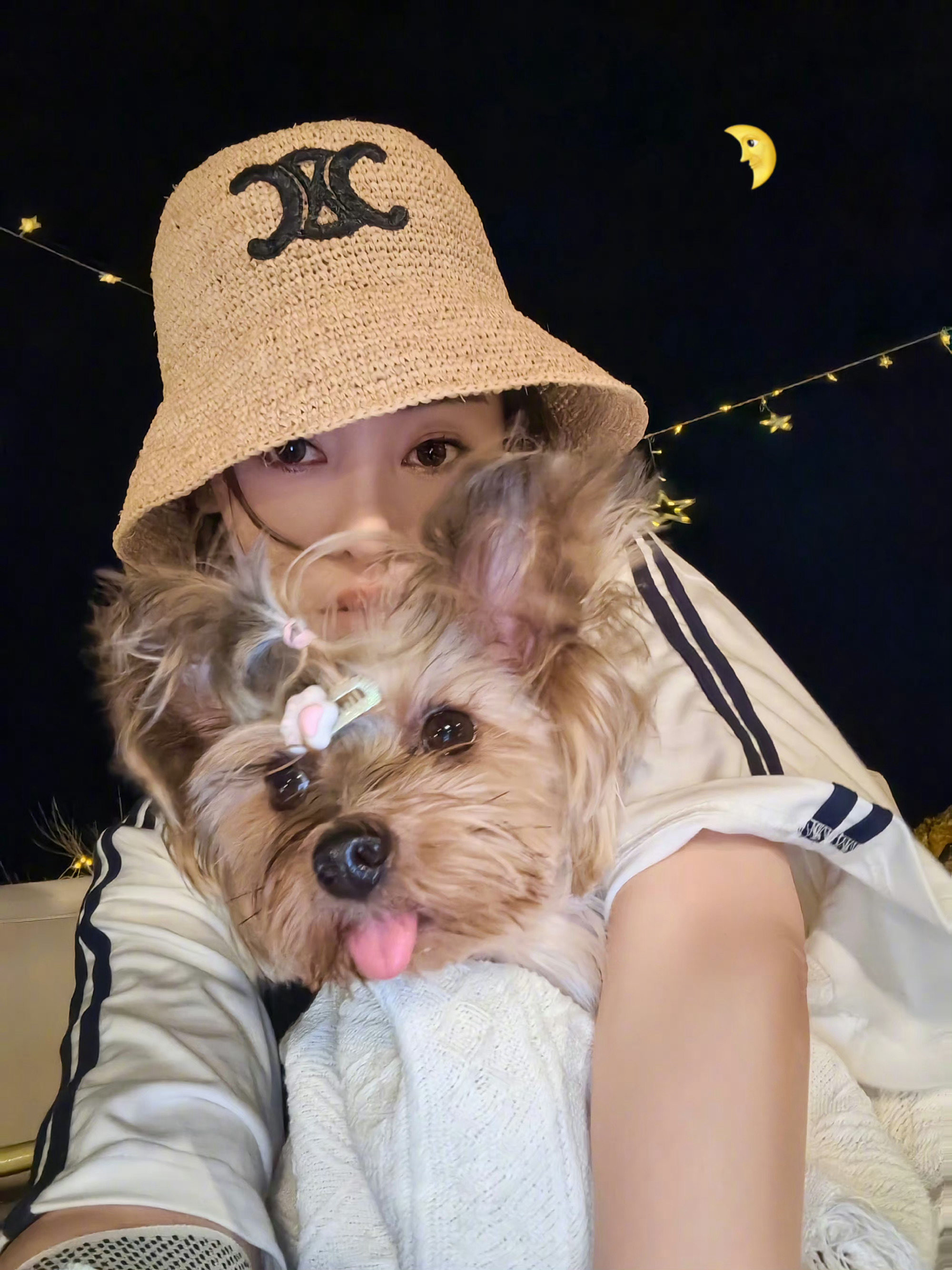 #张天爱抱狗自拍#此时多少有点羡慕如此可爱的狗狗,原来还被刘恋、于文文、张俪和赵