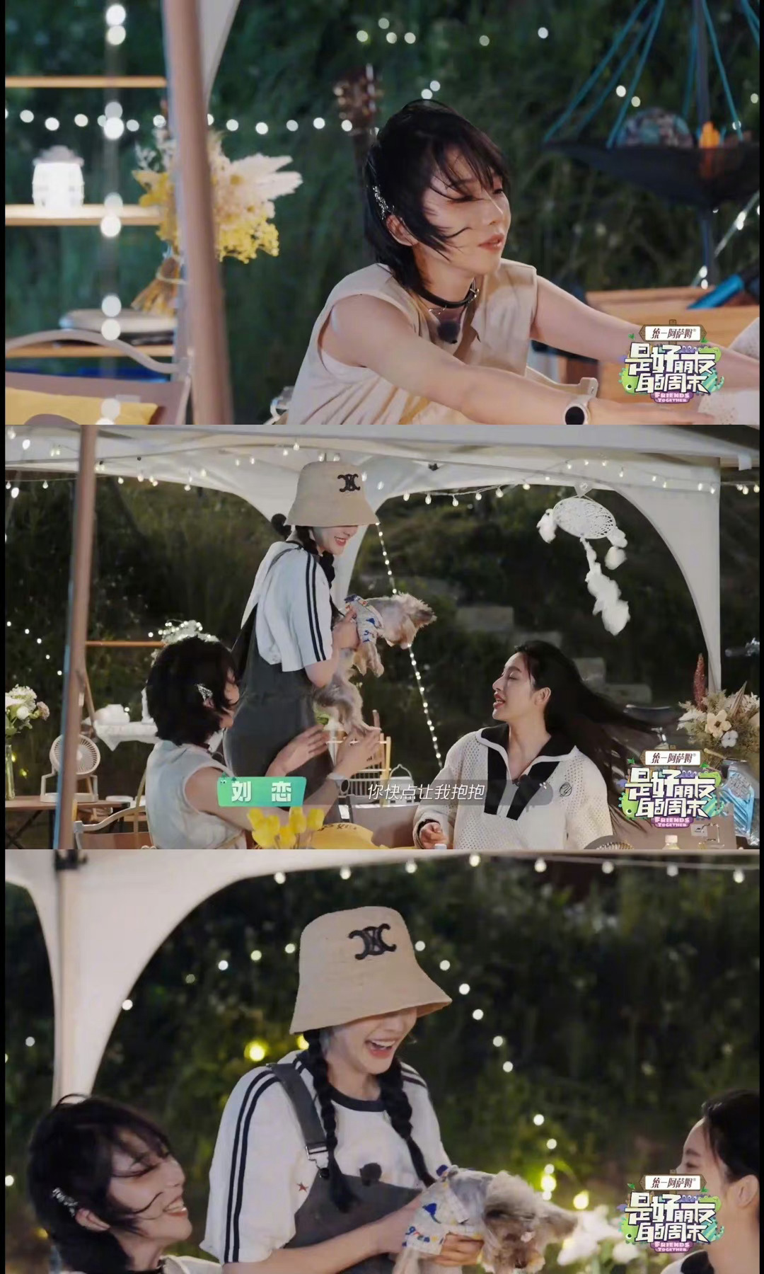 #张天爱抱狗自拍#可爱的狗狗真的太招漂亮姐姐们喜欢了,刘恋之前为了抱下狗狗把张天爱推开哈哈哈哈哈哈哈哈哈